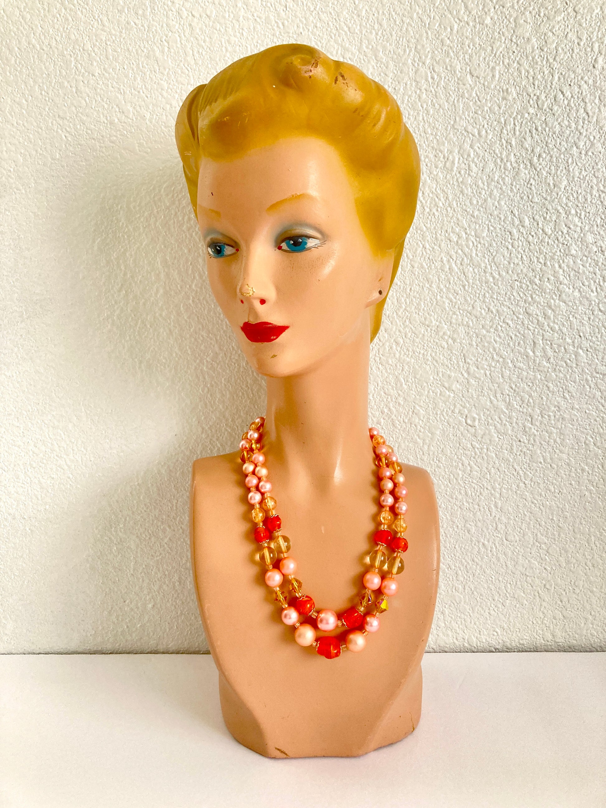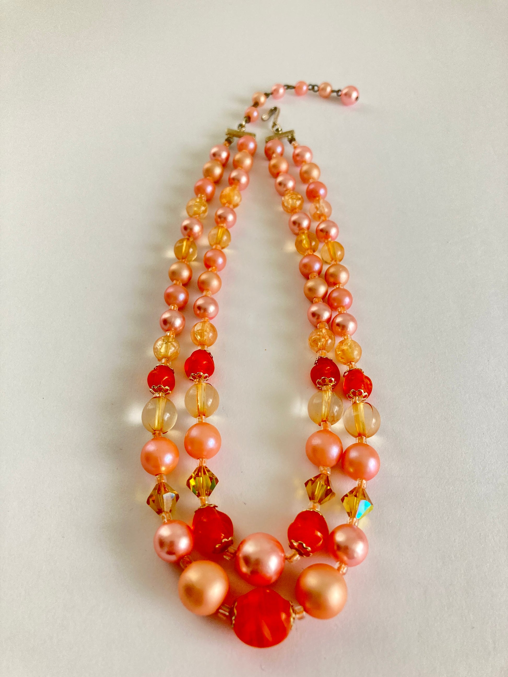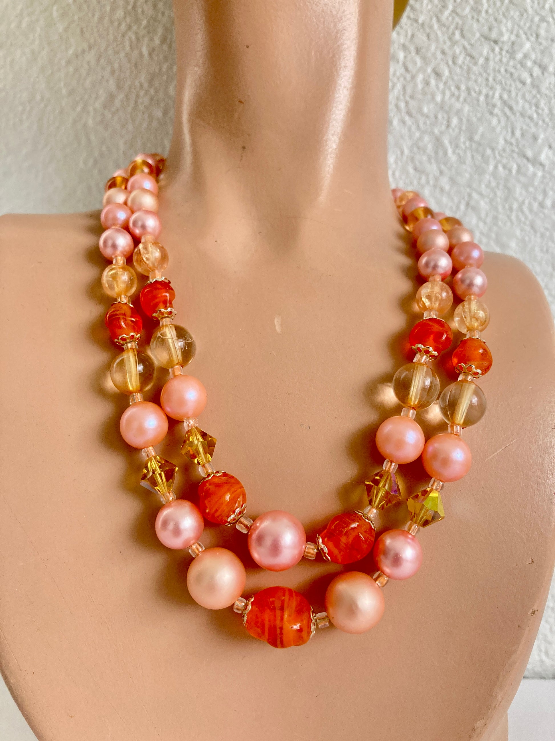 1950s Japan Pink, Orange, & Golden Double Strand Necklace