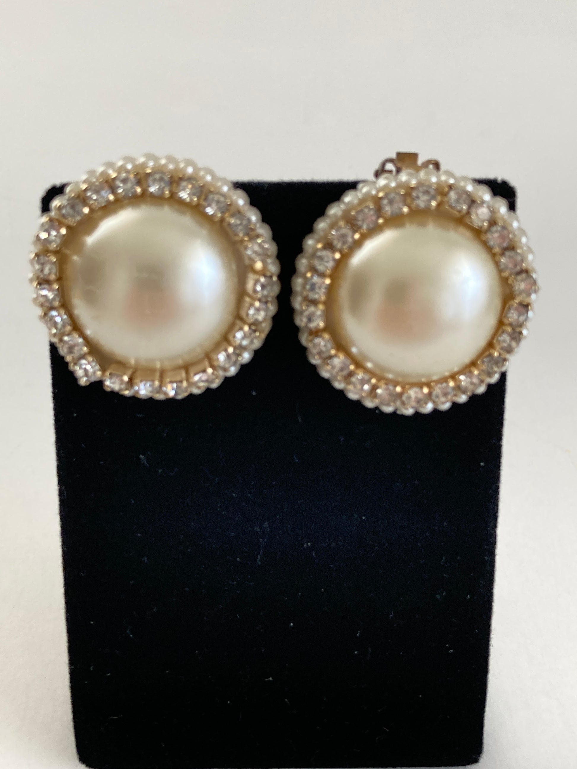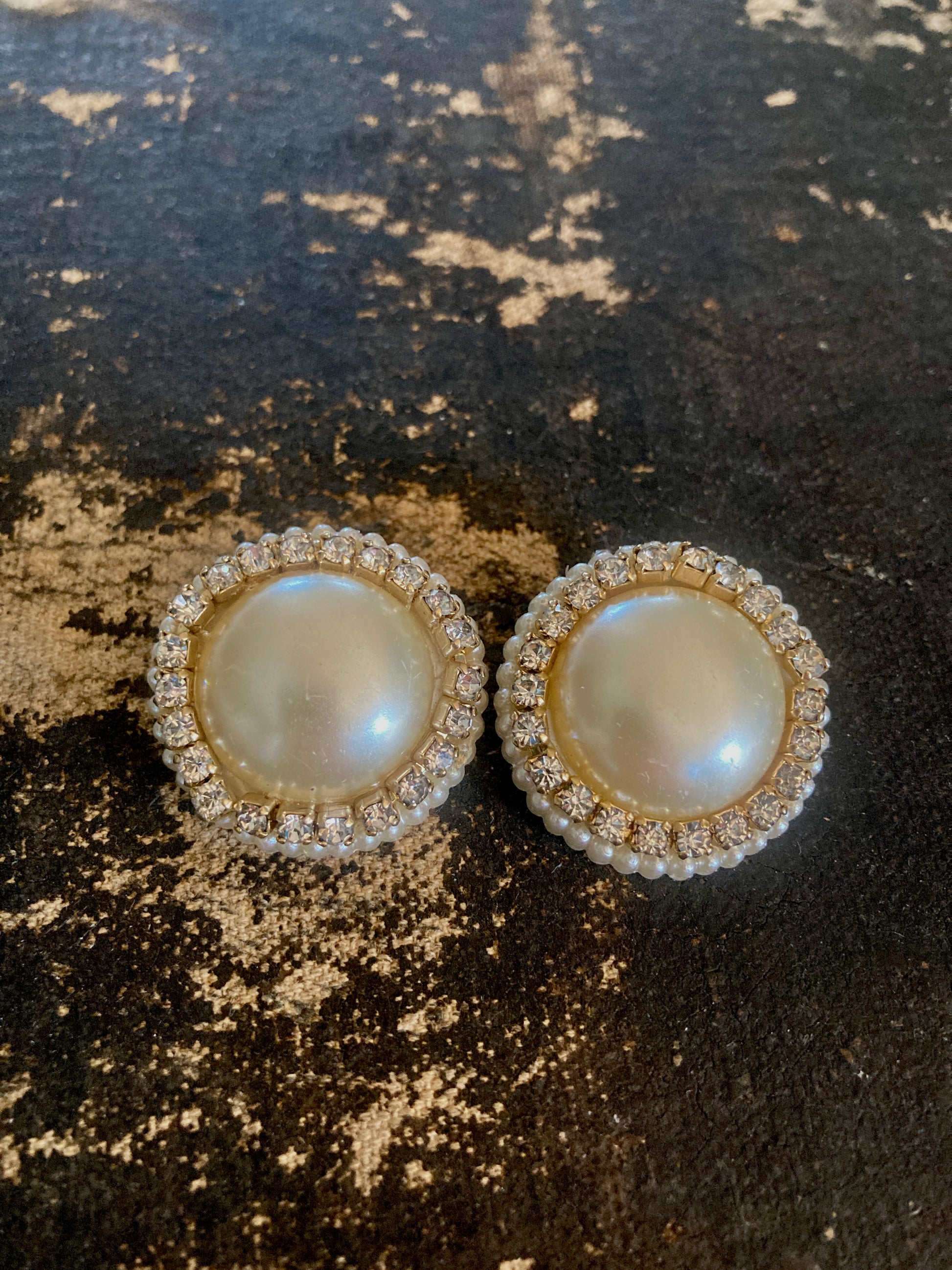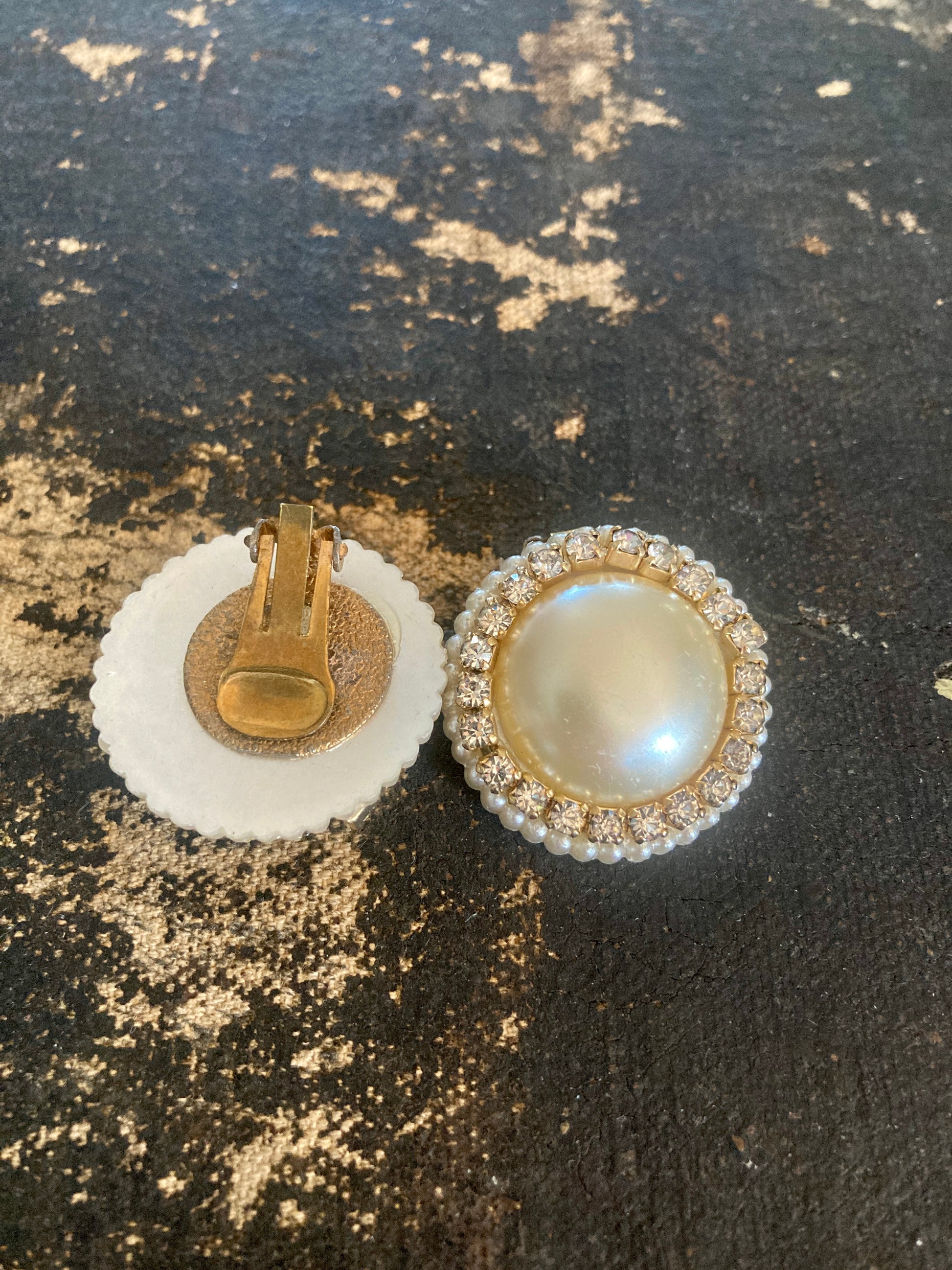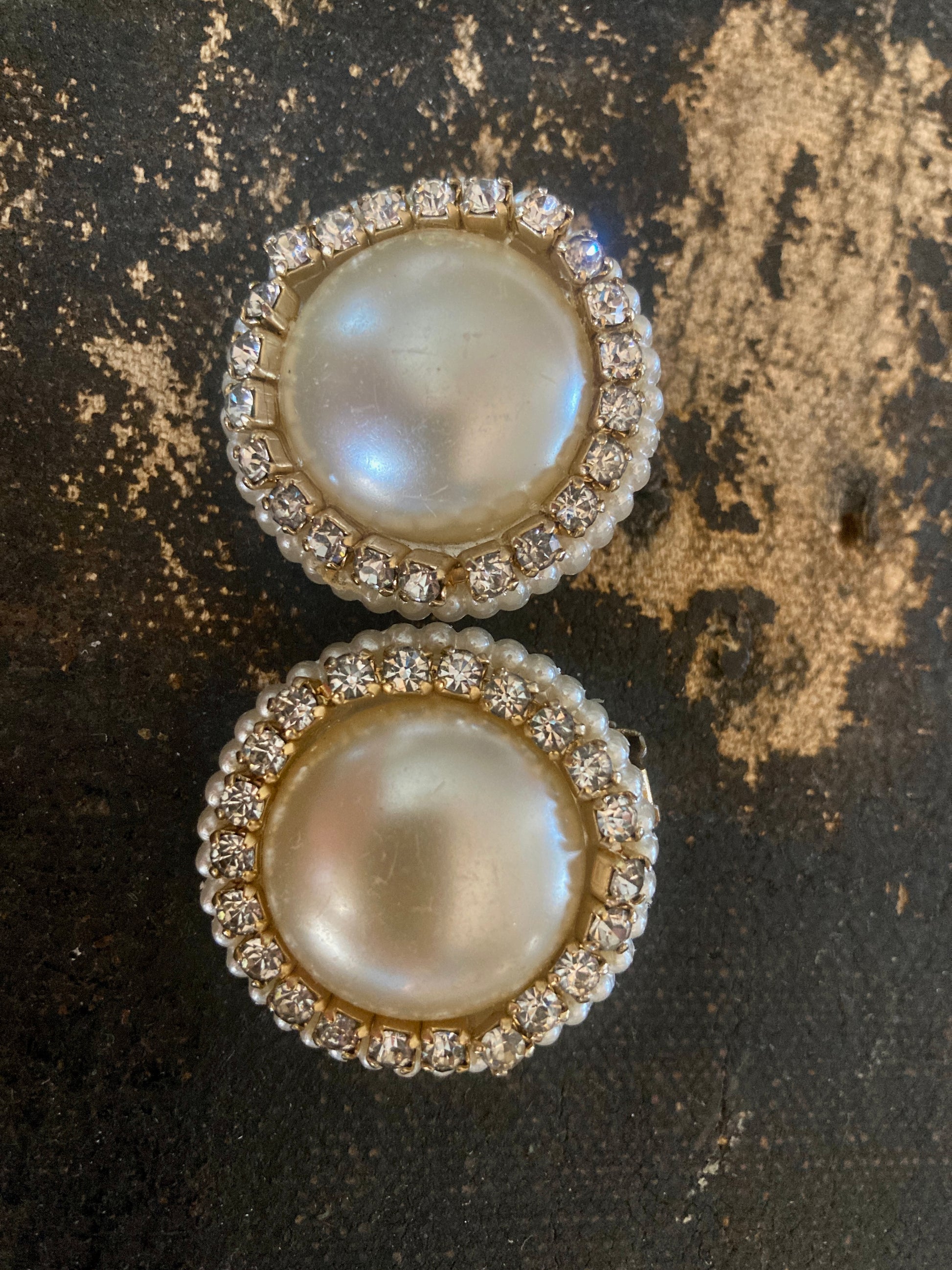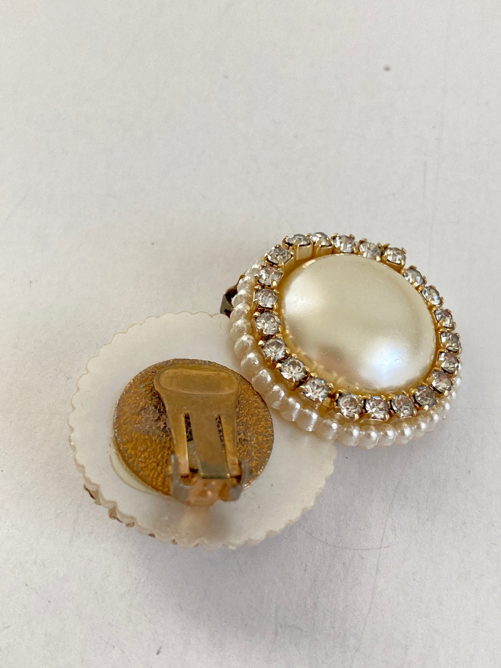 1960s Large Rhinestone and Pearl Button Earrings