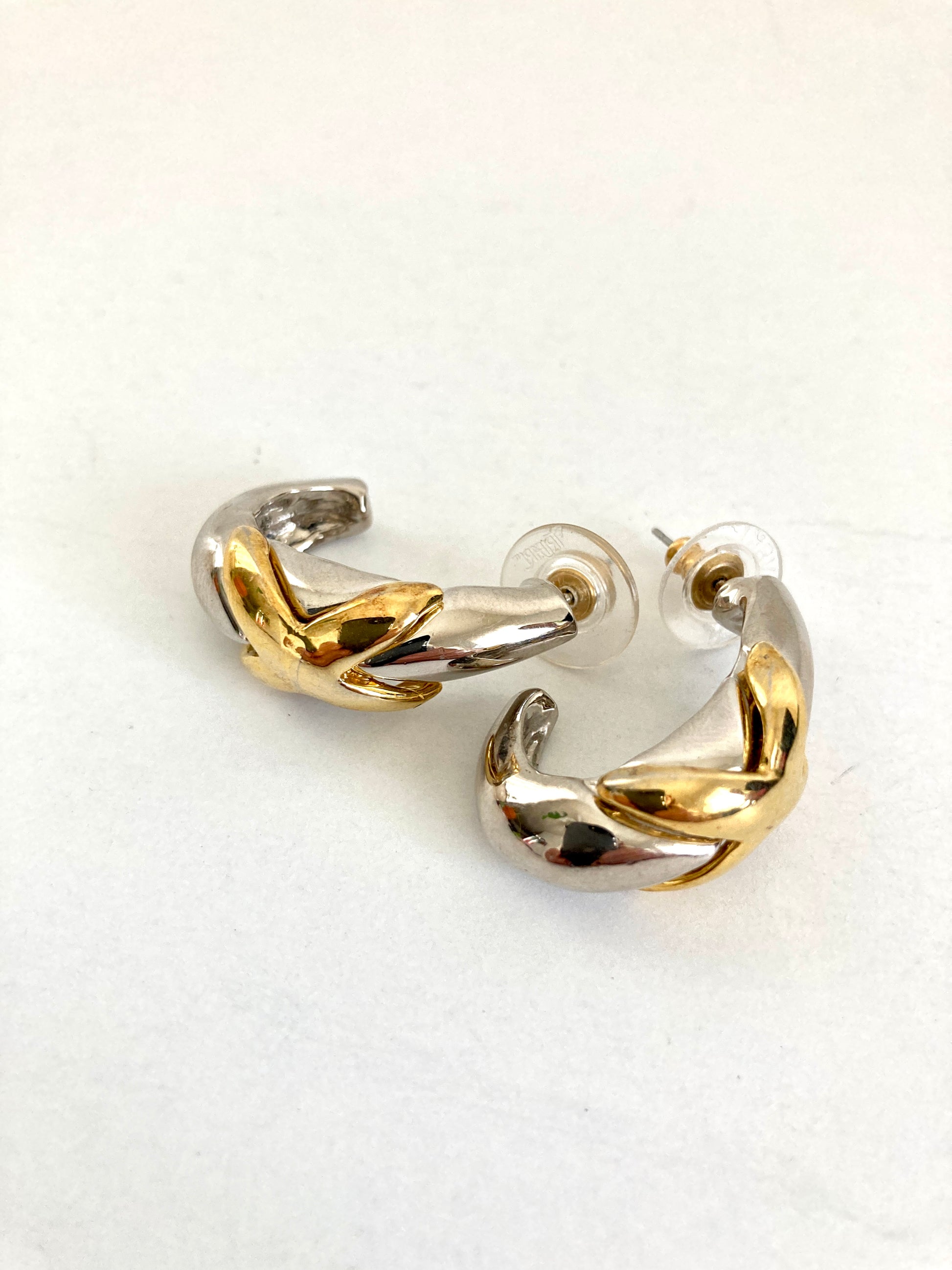 1980s Two Tone Half Hoop Earrings With X