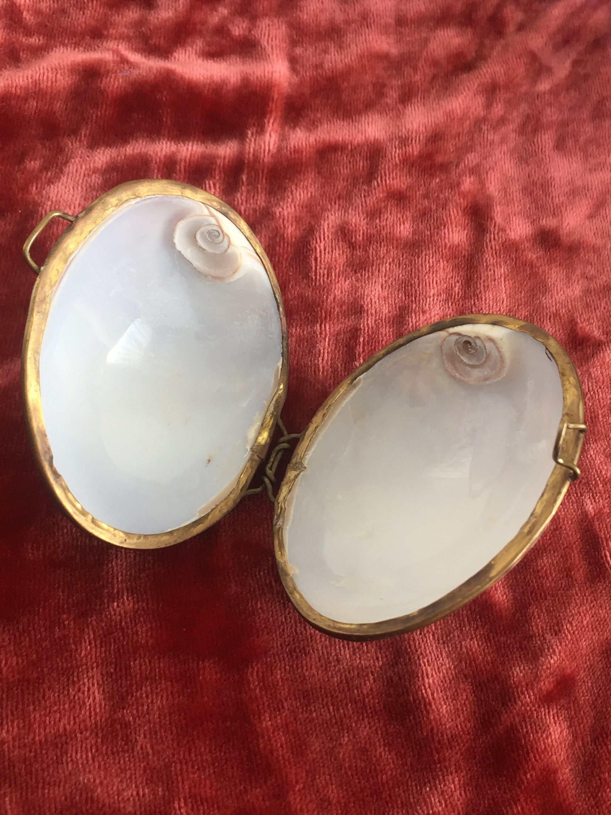 Gorgeous antique Tiger Cowrie shell Victorian coin purse or trinket box.  Made from real shell and finished in brass with a brass closure.  This beautiful little piece of history would look right at home on a vanity or perfume tray. Or add it to a collection for a true "Shelfie".  You can even carry it in your purse to contain those tiny pills or coins that seem to end up lost. Would make a great gift too!