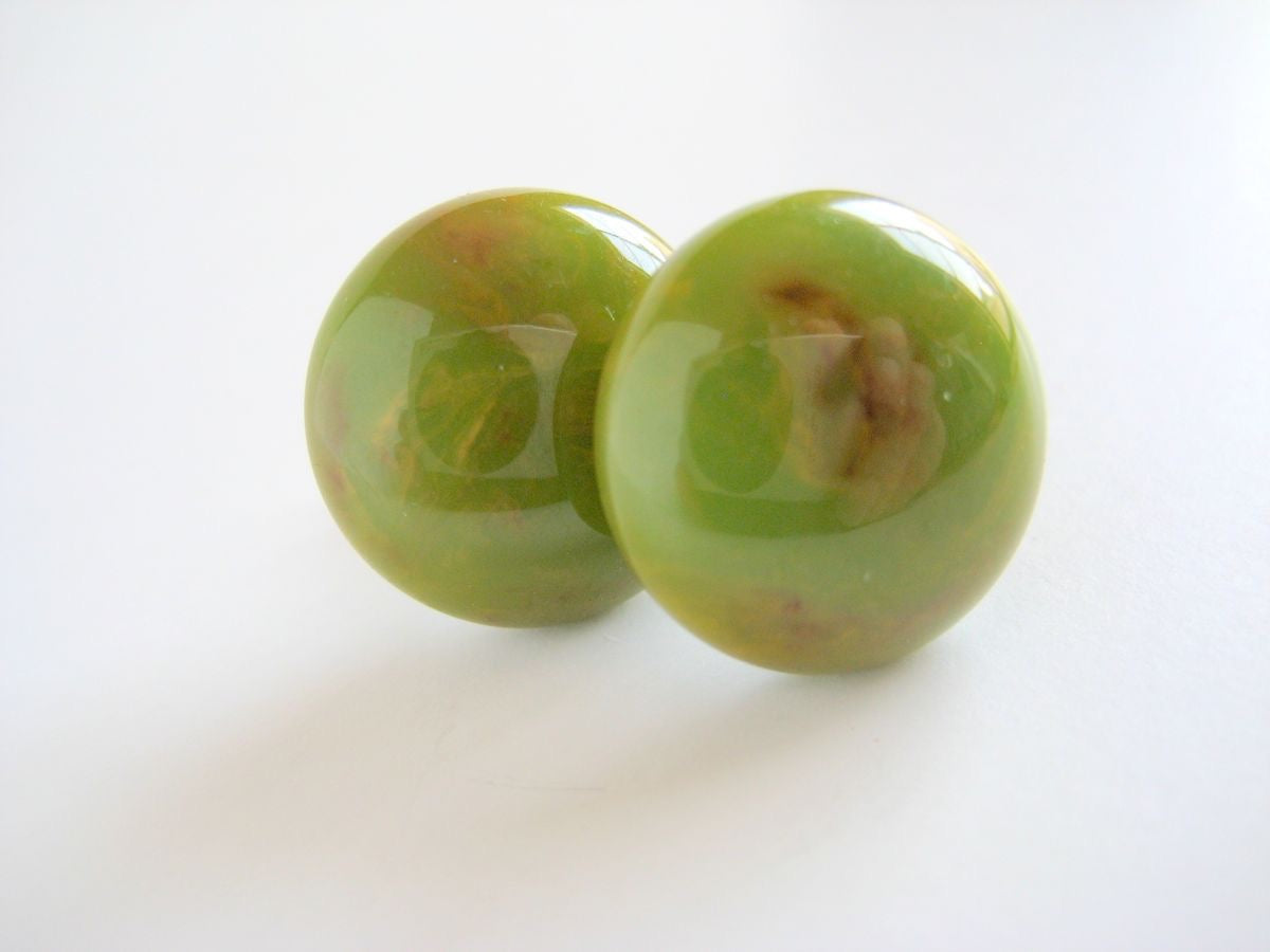 Bakelite Button Earrings Spinach Green