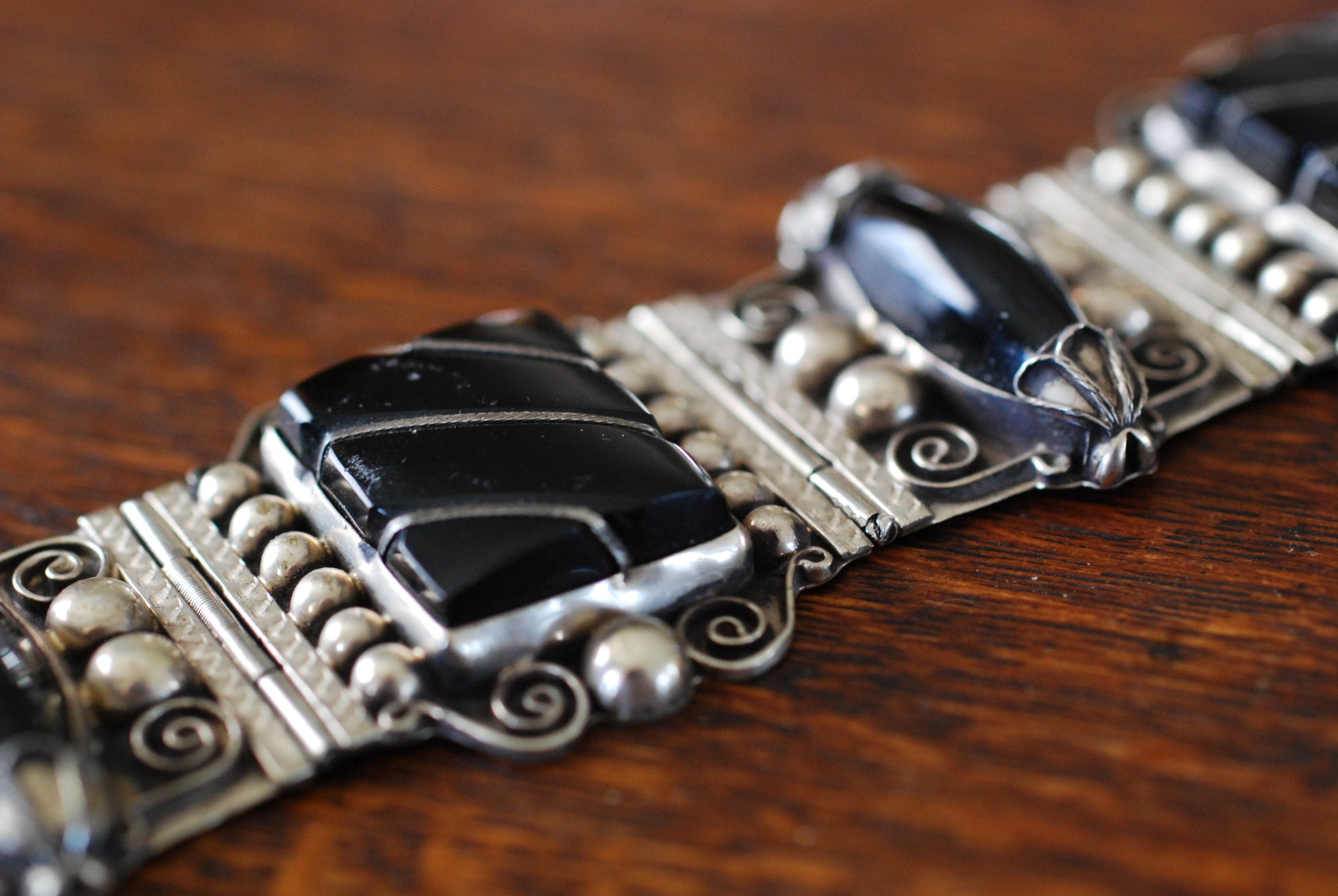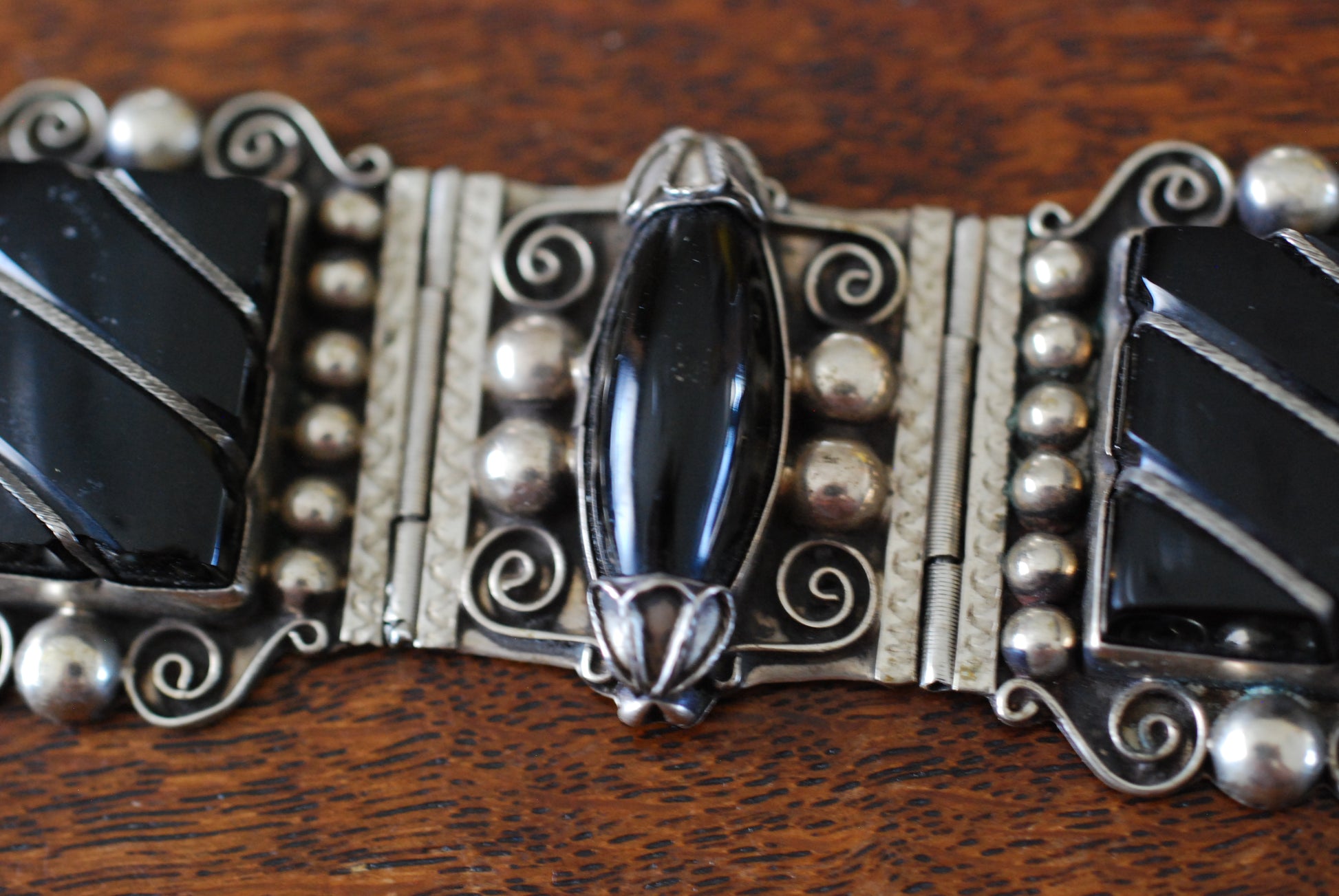 Black Onyx and Silver Mexico Large Panel Bracelet