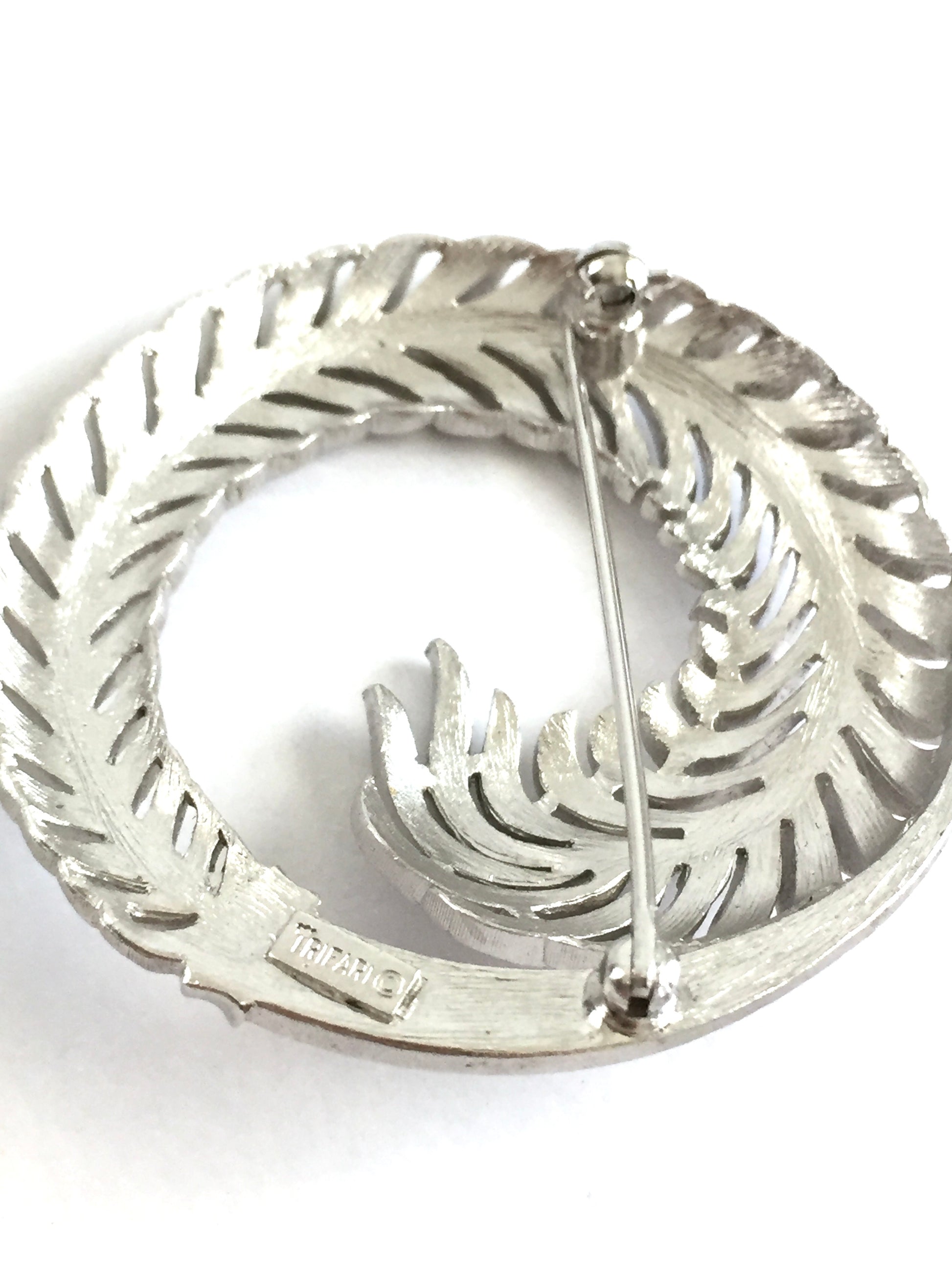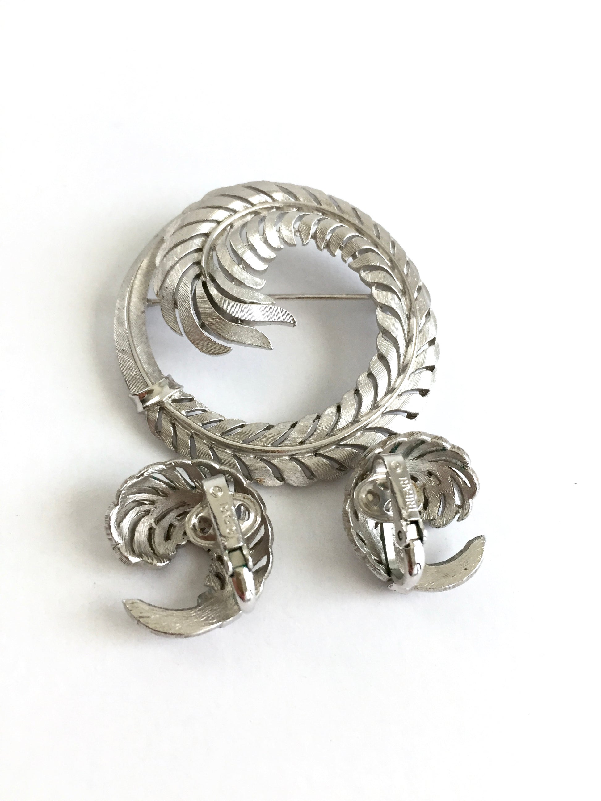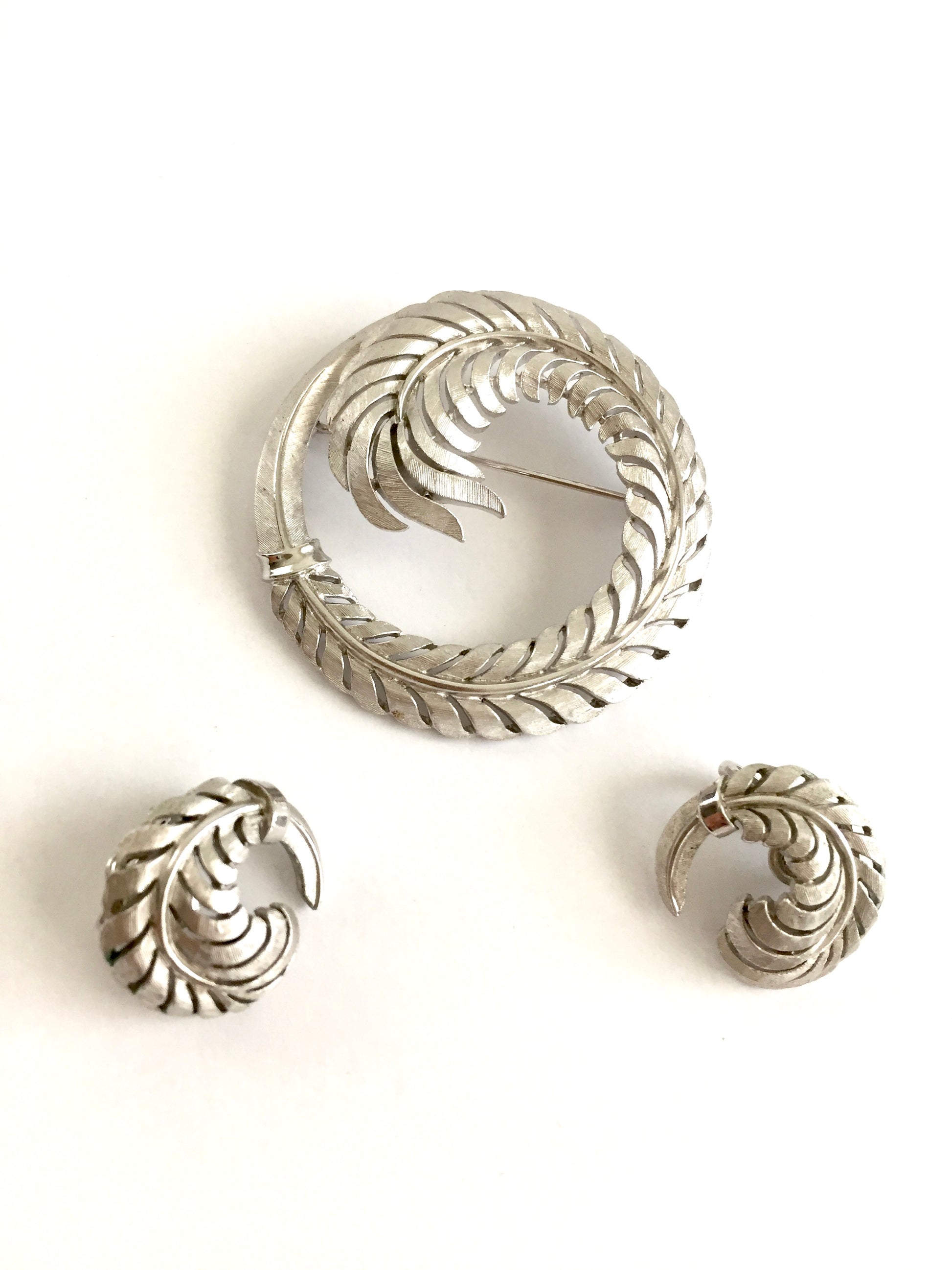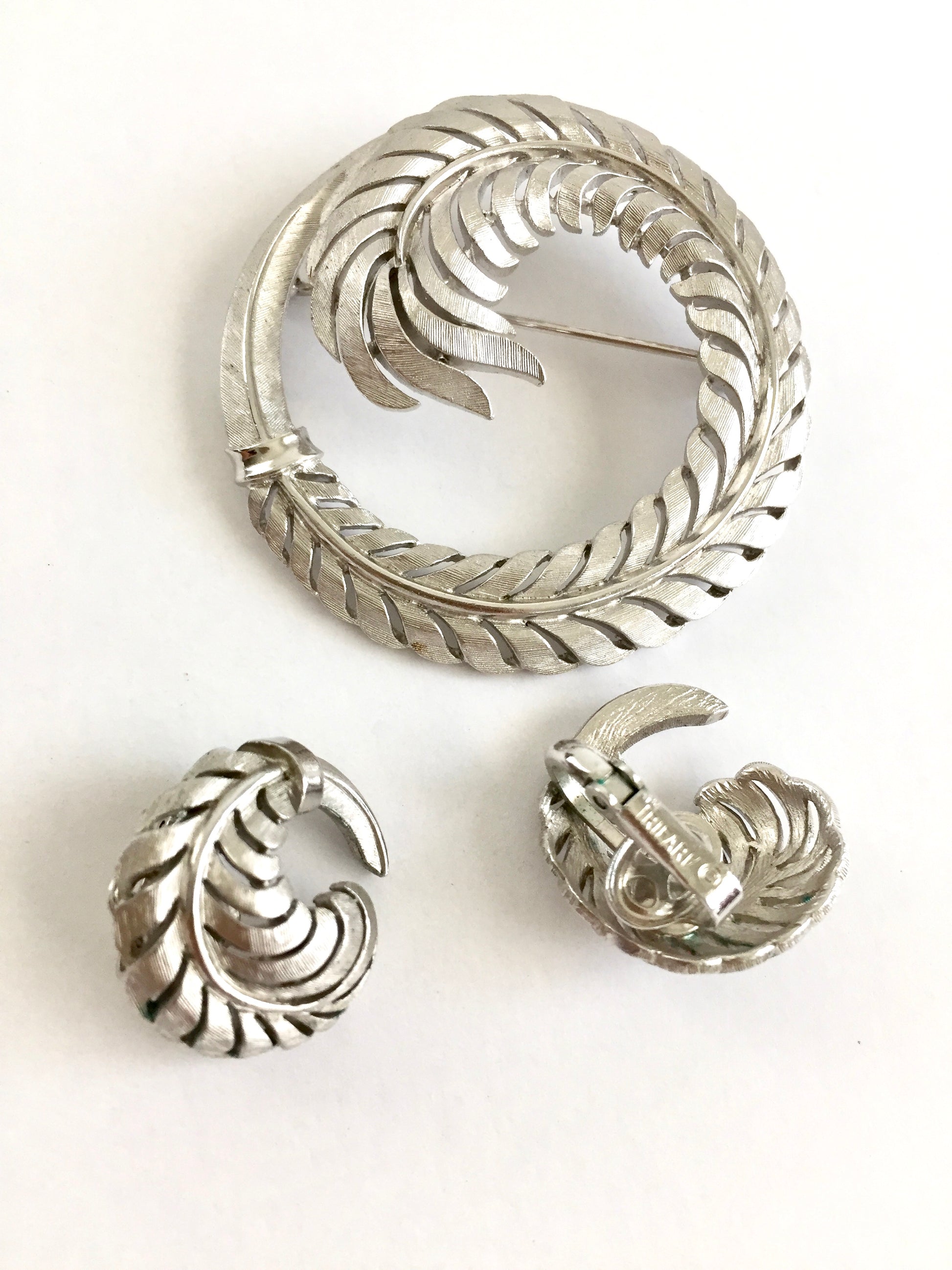 Brooch and Earrings Set Brushed Silver Fern, Trifari