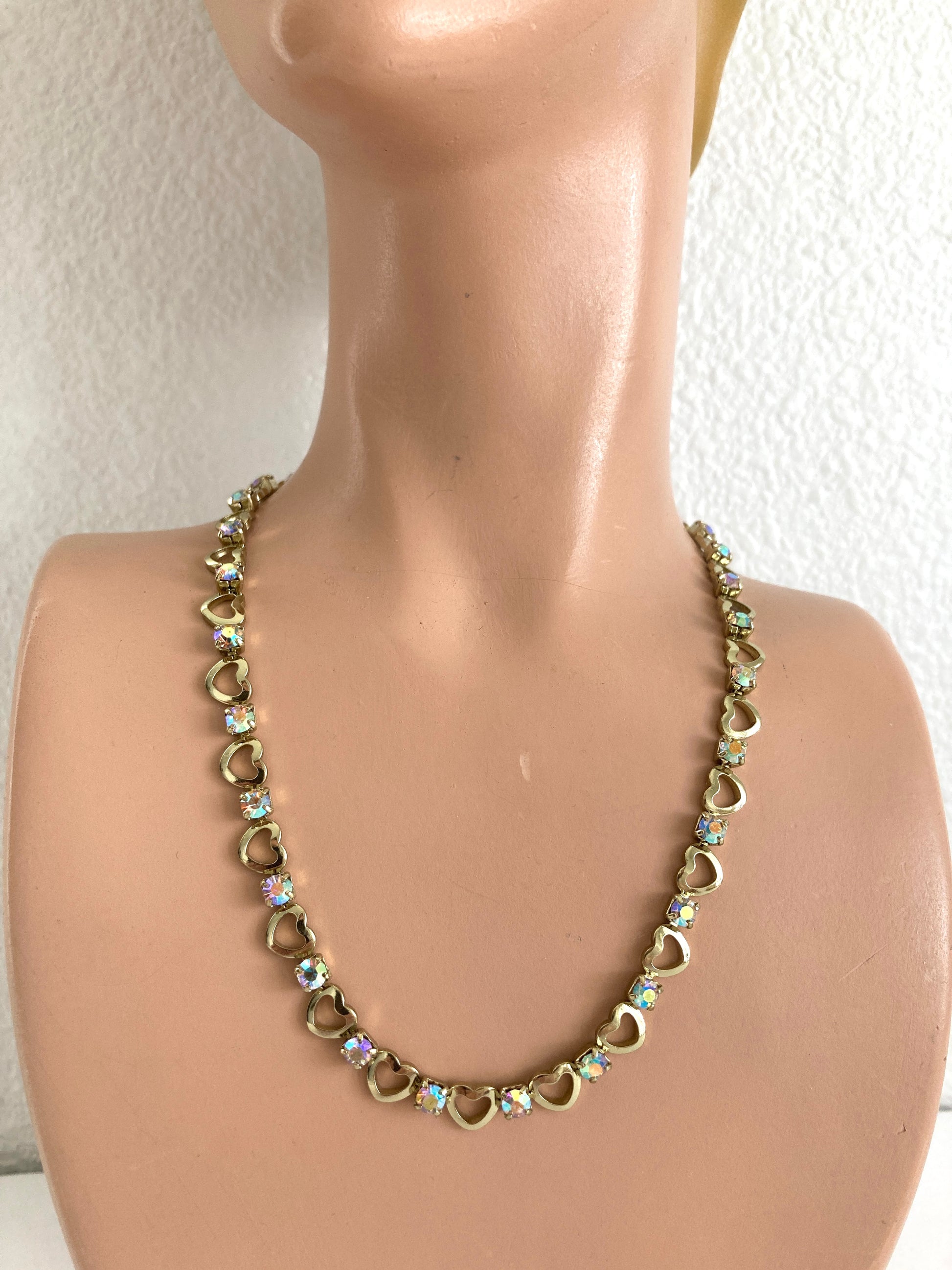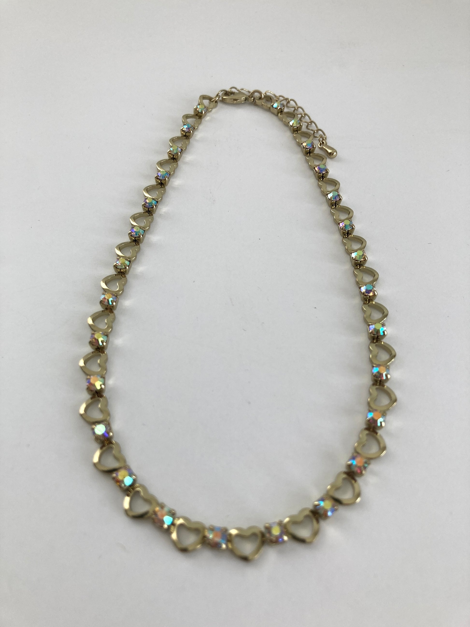 Chain of Hearts Choker Necklace w/Aurora Borealis Rhinestones