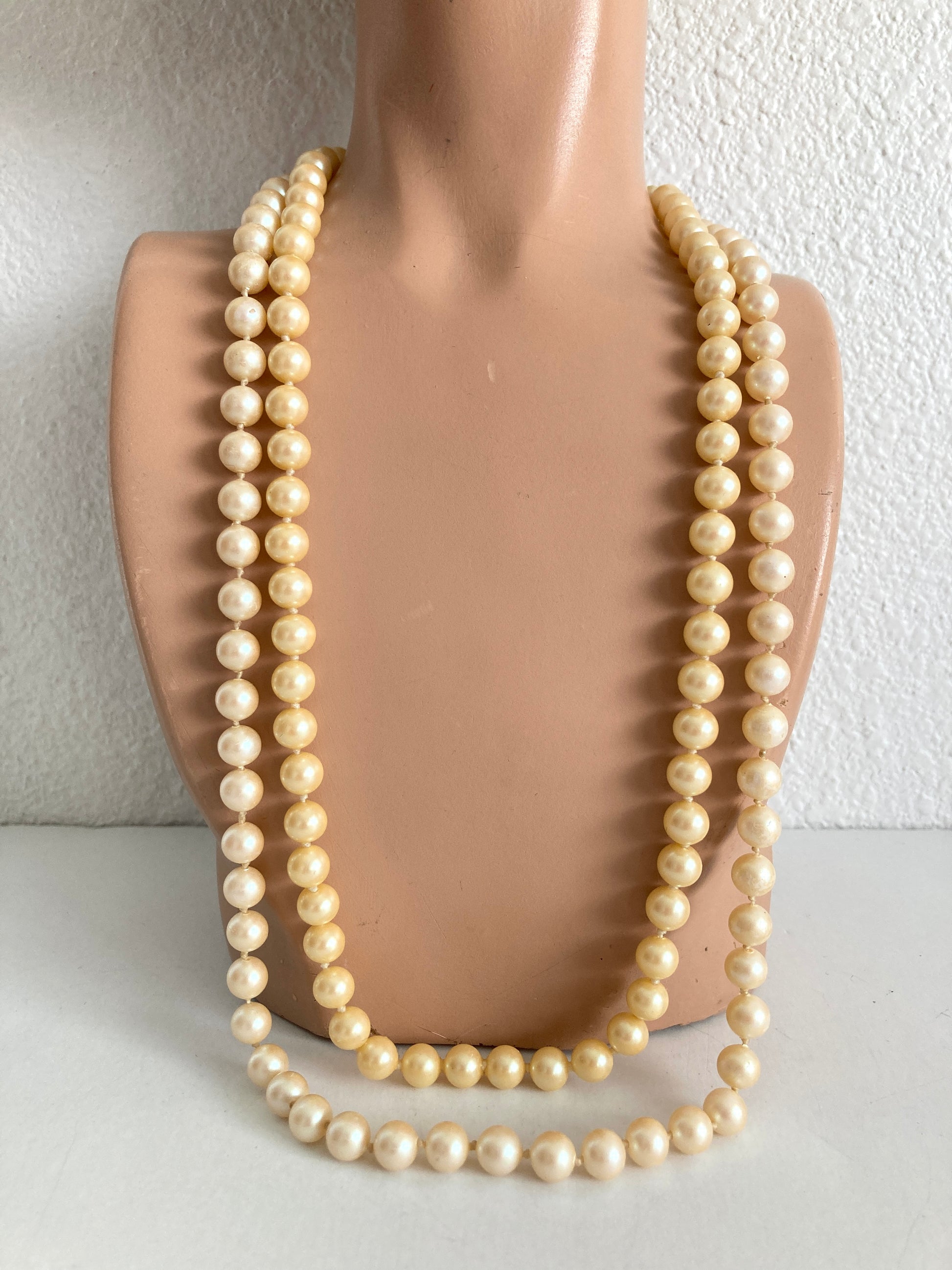 Creamy 24"Knotted Glass Pearl Necklace Single Strand