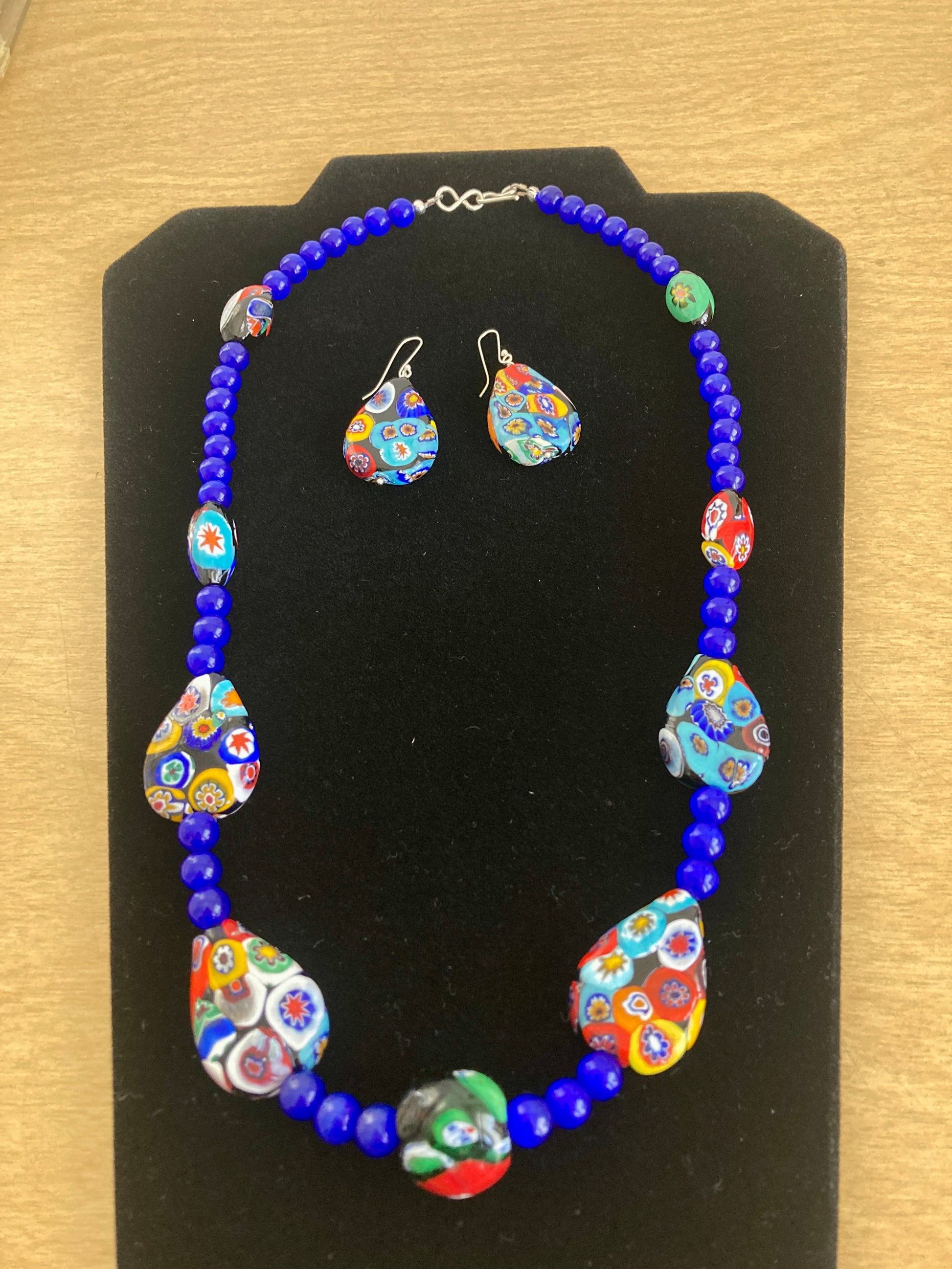 Custom Made Venetian Glass Millefiori Murano Glass Necklace and Earrings