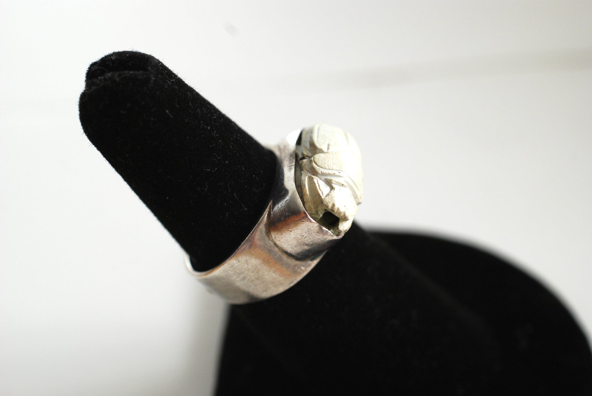 Egyptian Revival Scarab Bead Sterling Silver Ring size 7