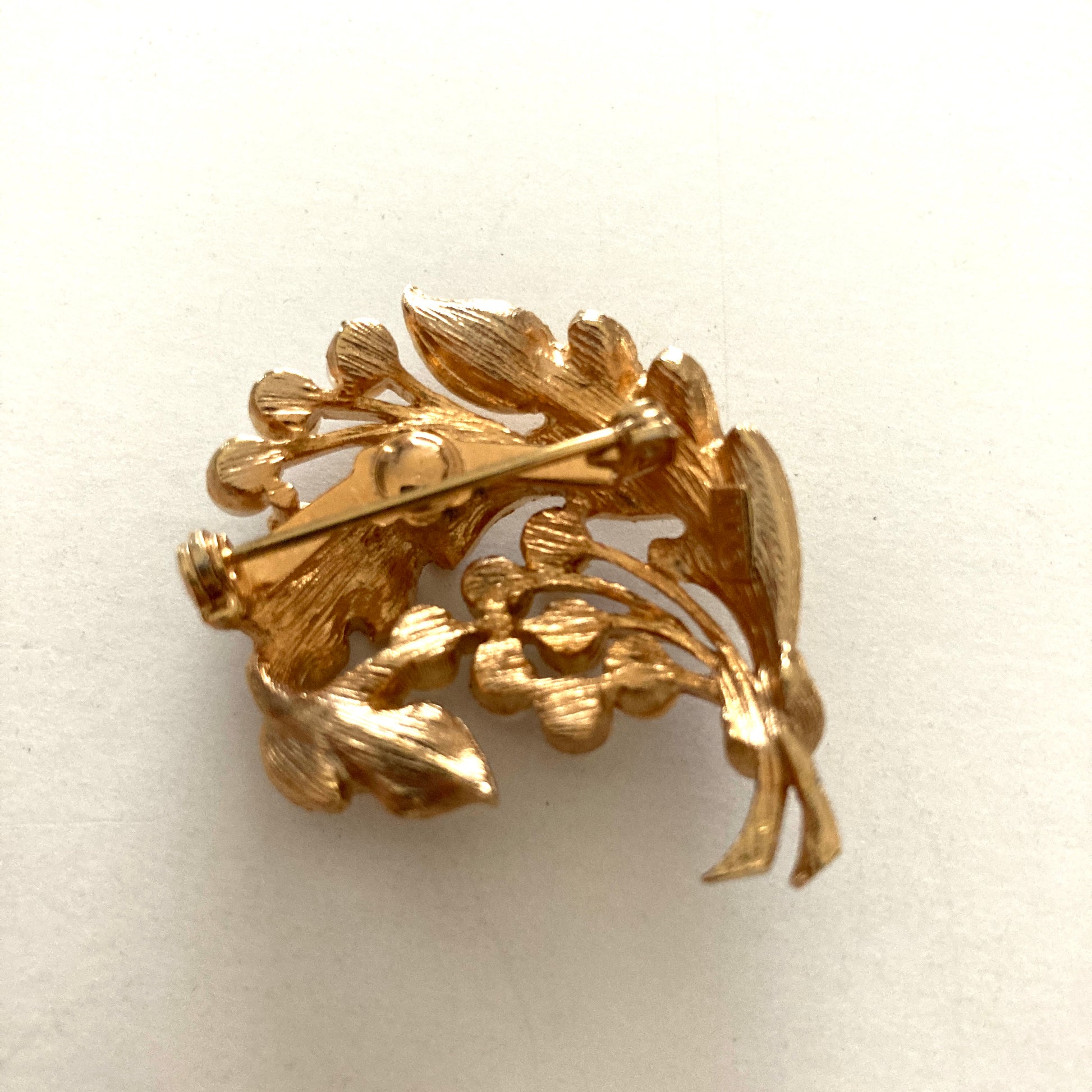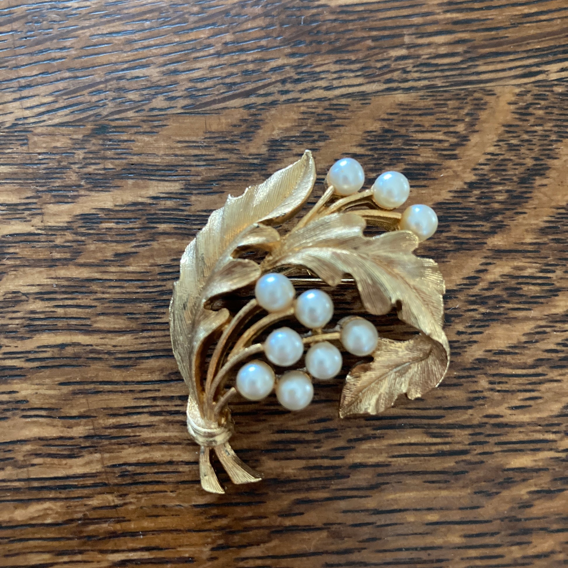 Gold Tone Leaves and Pearls Brooch by JJ