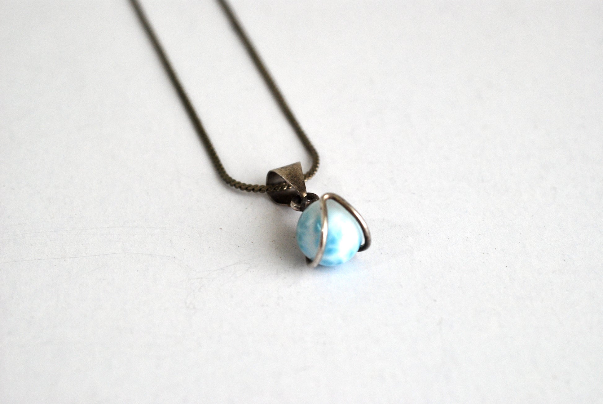 Larimar Ball Pendant in Sterling Silver Setting on Serpentine Chain