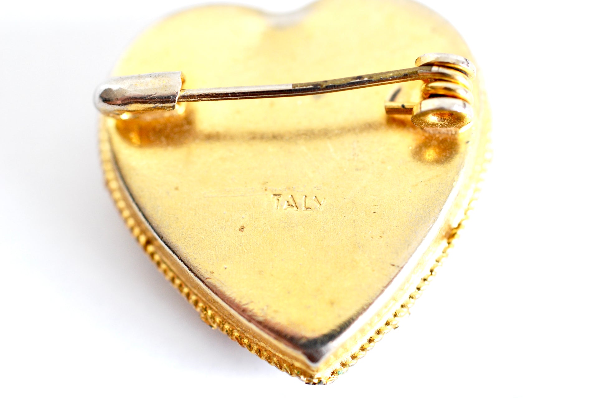 Micro Mosaic Heart Brooch Stamped Italy