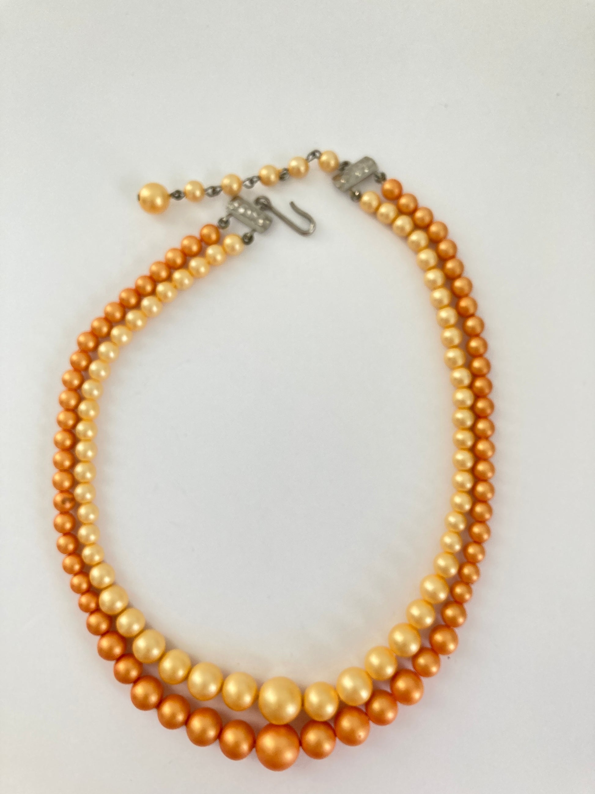 Orange and Apricot Double Strand 1960s Beaded Necklace