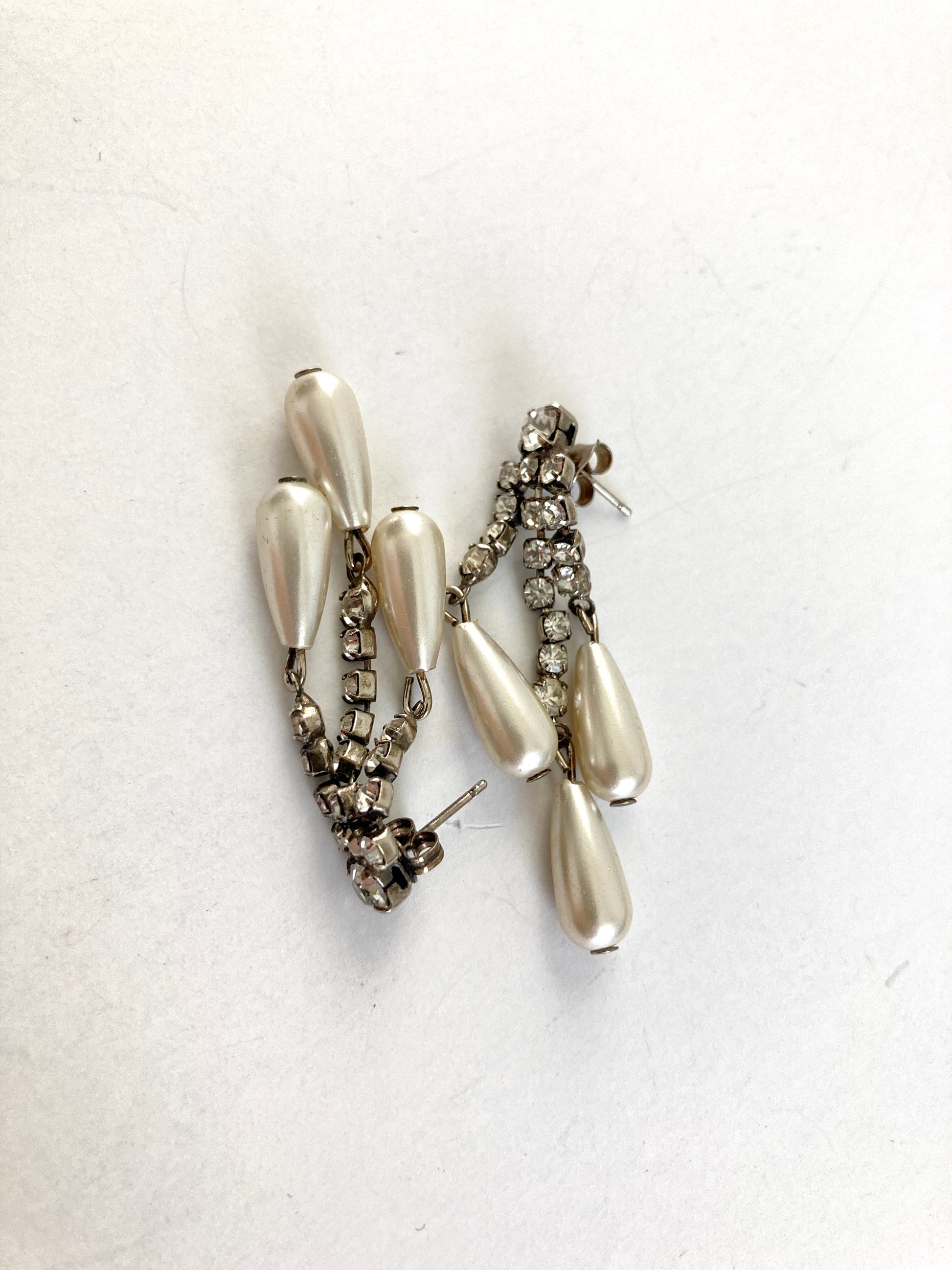 Pearl and Rhinestone Dangle Earrings