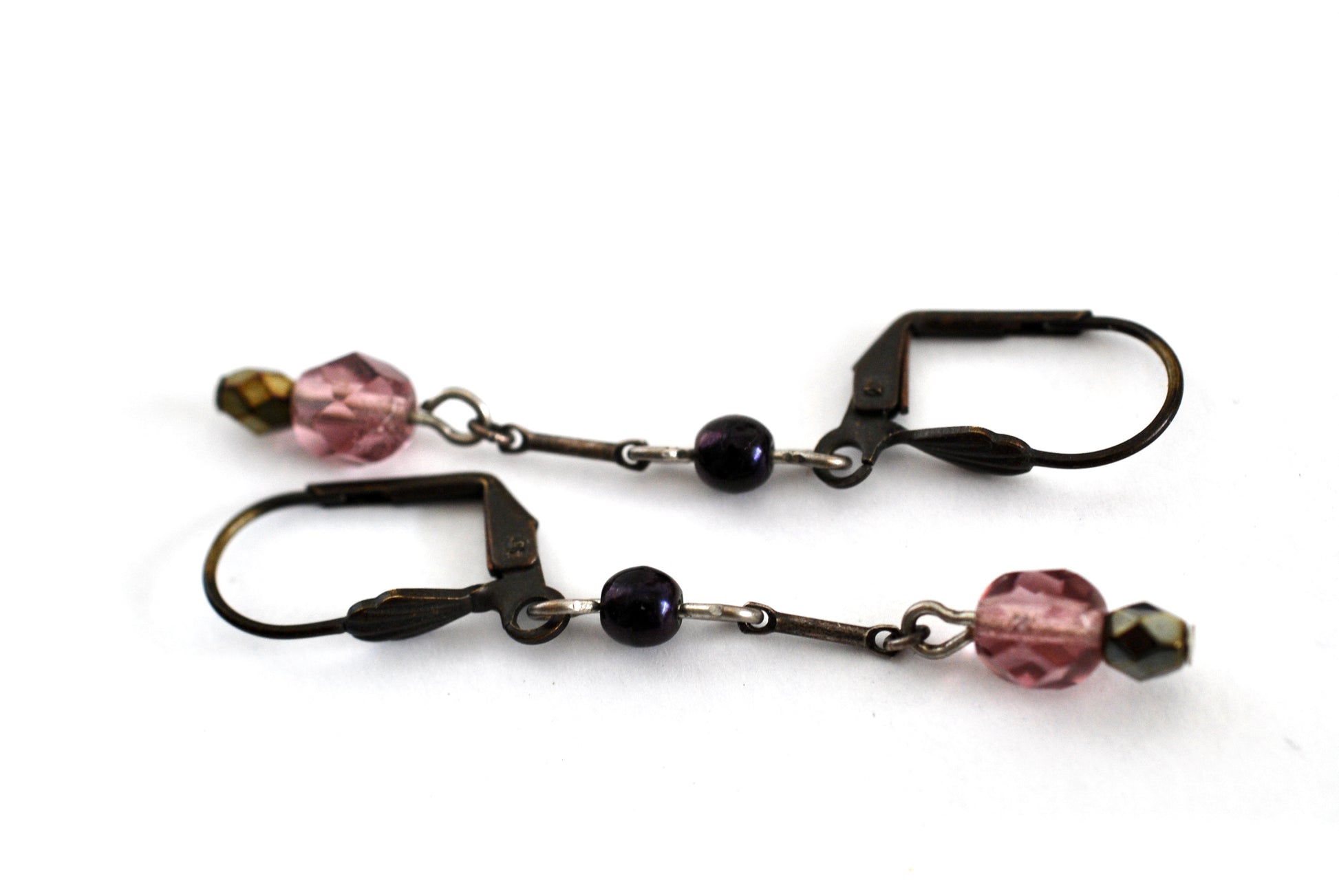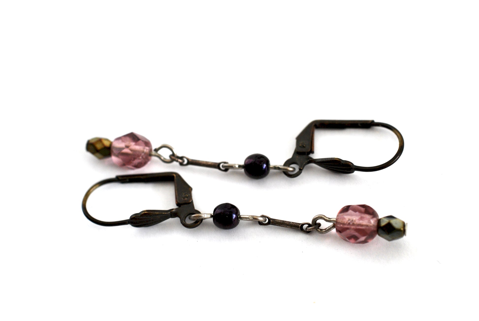 Purple Beaded Drop Earrings Burnished Bronze