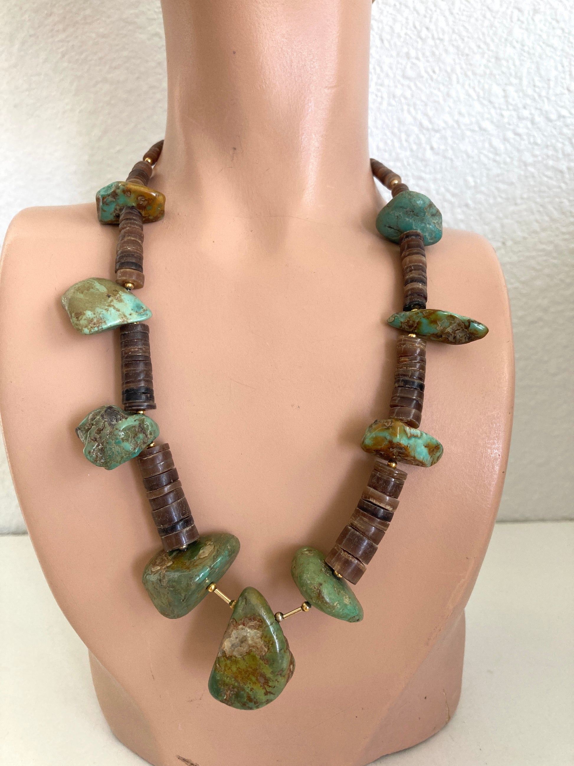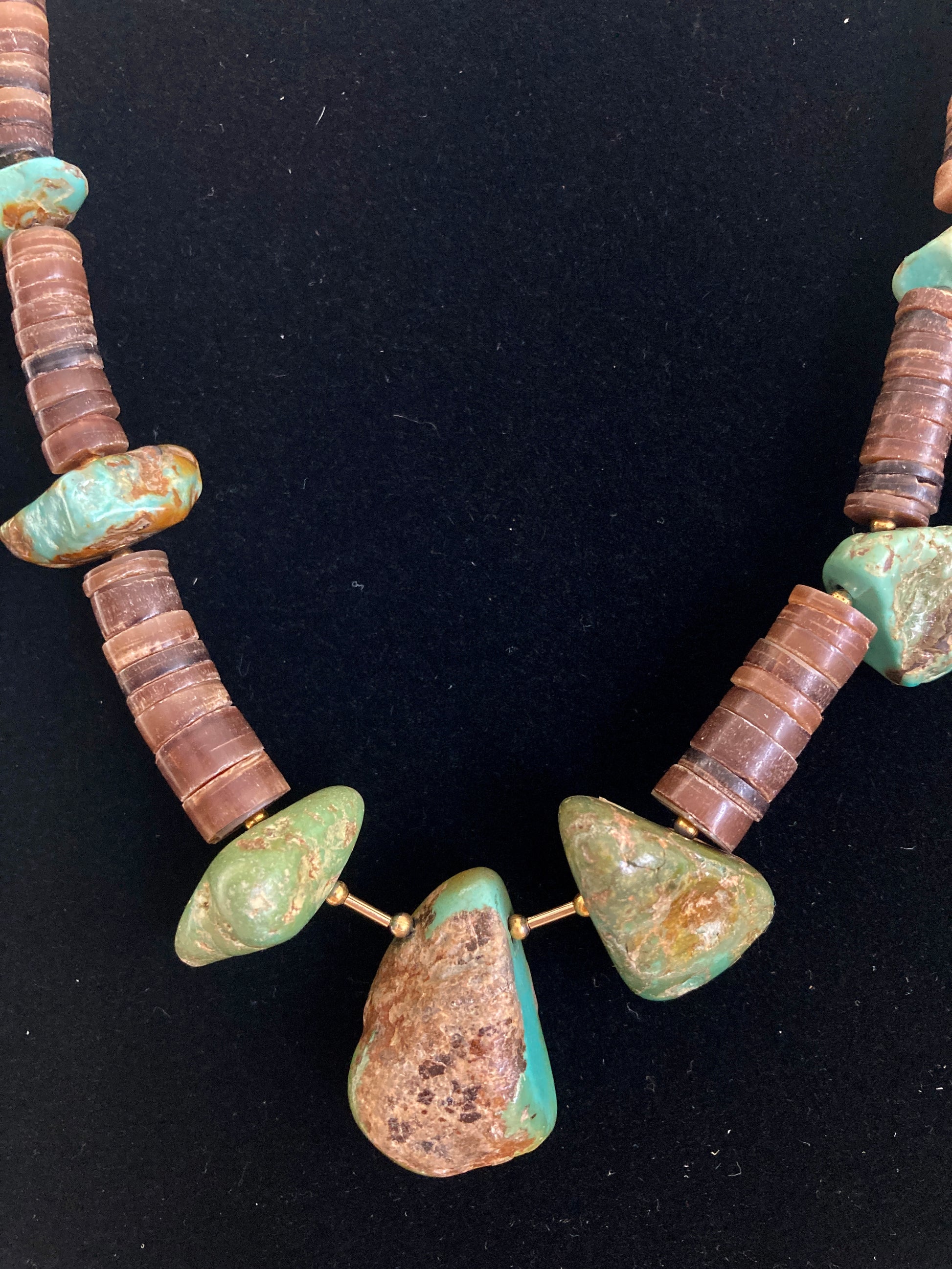 Raw Chunky Turquoise & Heishi Bead Necklace