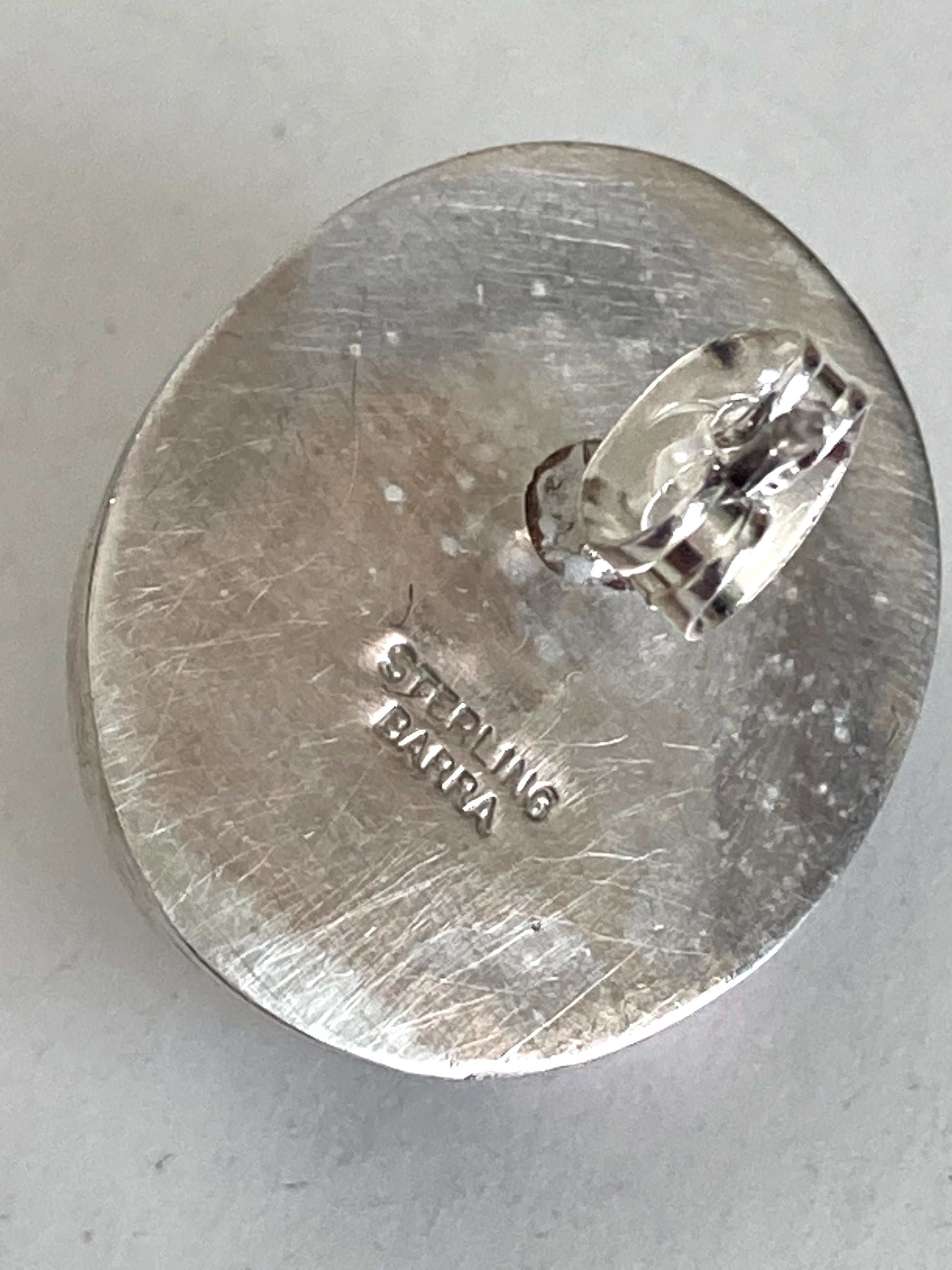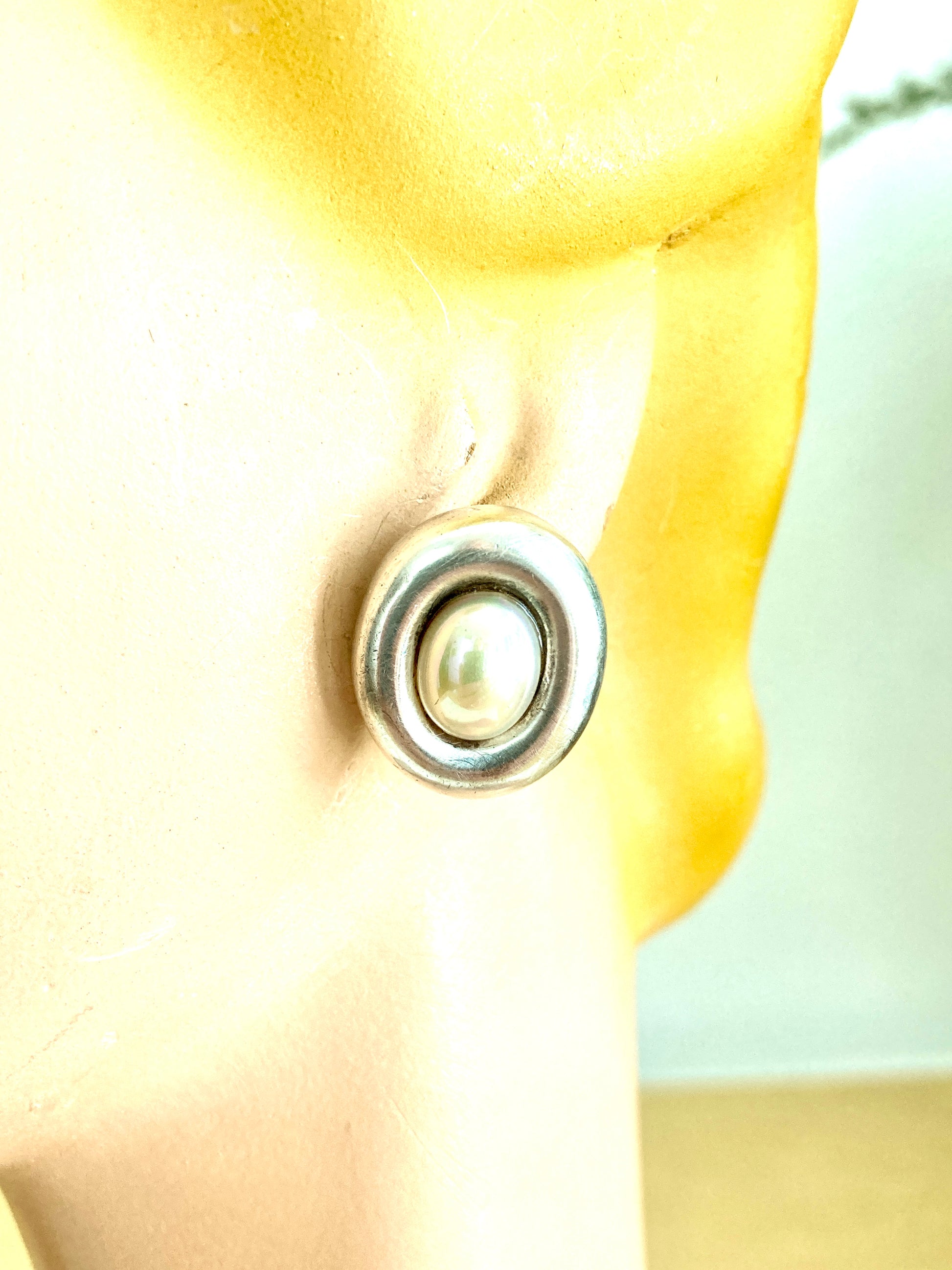 Simple classics never go out of style. These gorgeous sterling silver oval earrings feature centered faux pearls in a smooth wide setting. They have sterling silver post-style backs and are marked on the base with Sterling Barra. Perfect for everyday wear.