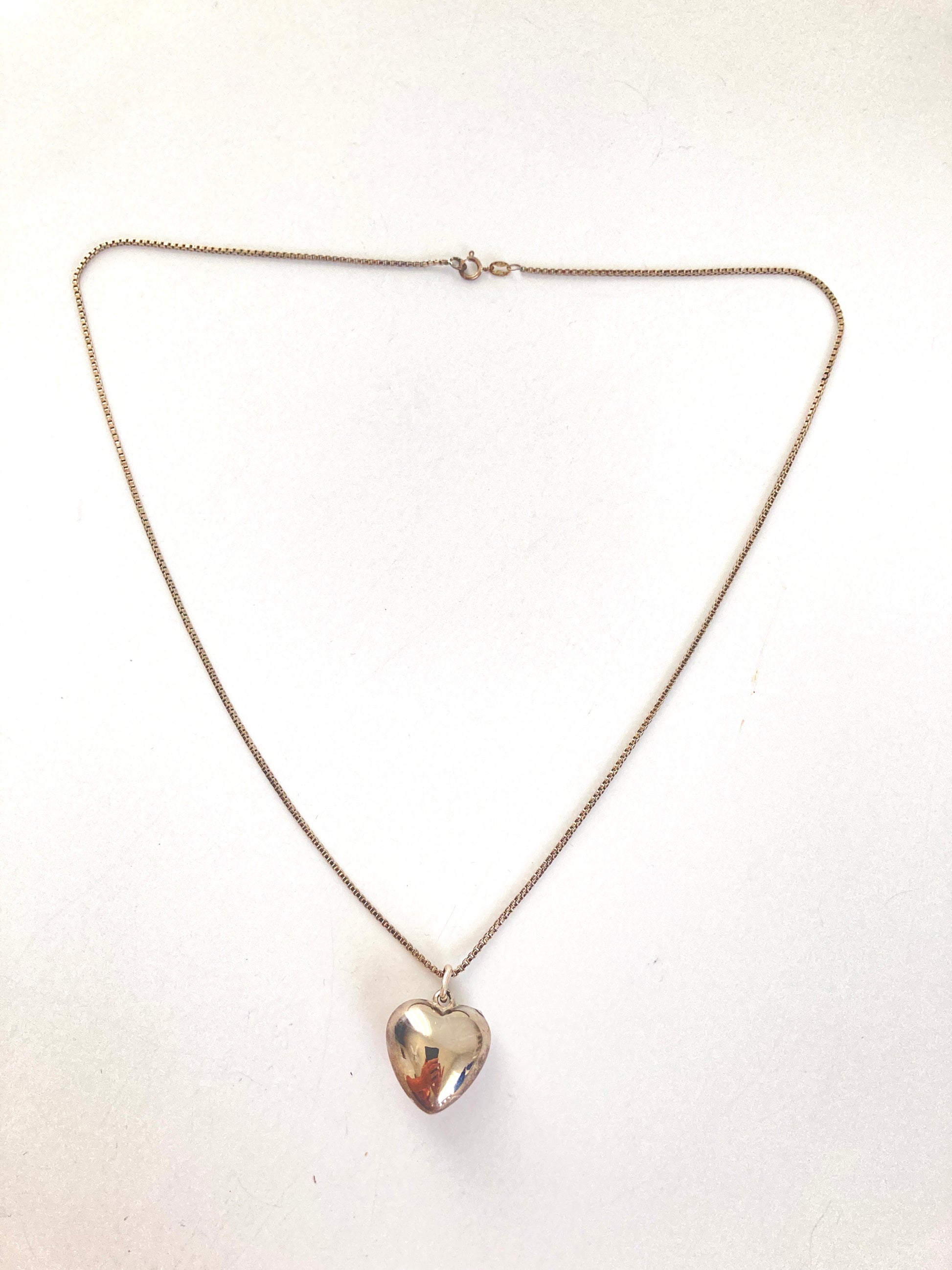 Sterling Silver Puffy Heart on Box Chain Necklace
