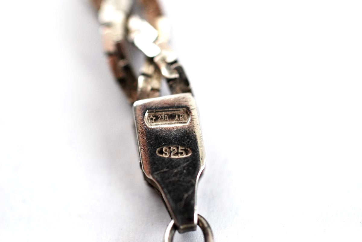 This is a classic triple strand braided herringbone chain bracelet in sterling silver stamped 925 and marked ⭐︎ 230 AR which is an Italian hallmark used after 1968. The bracelet does have some patina but can easily be polished if you desire. Would make a lovely gift.