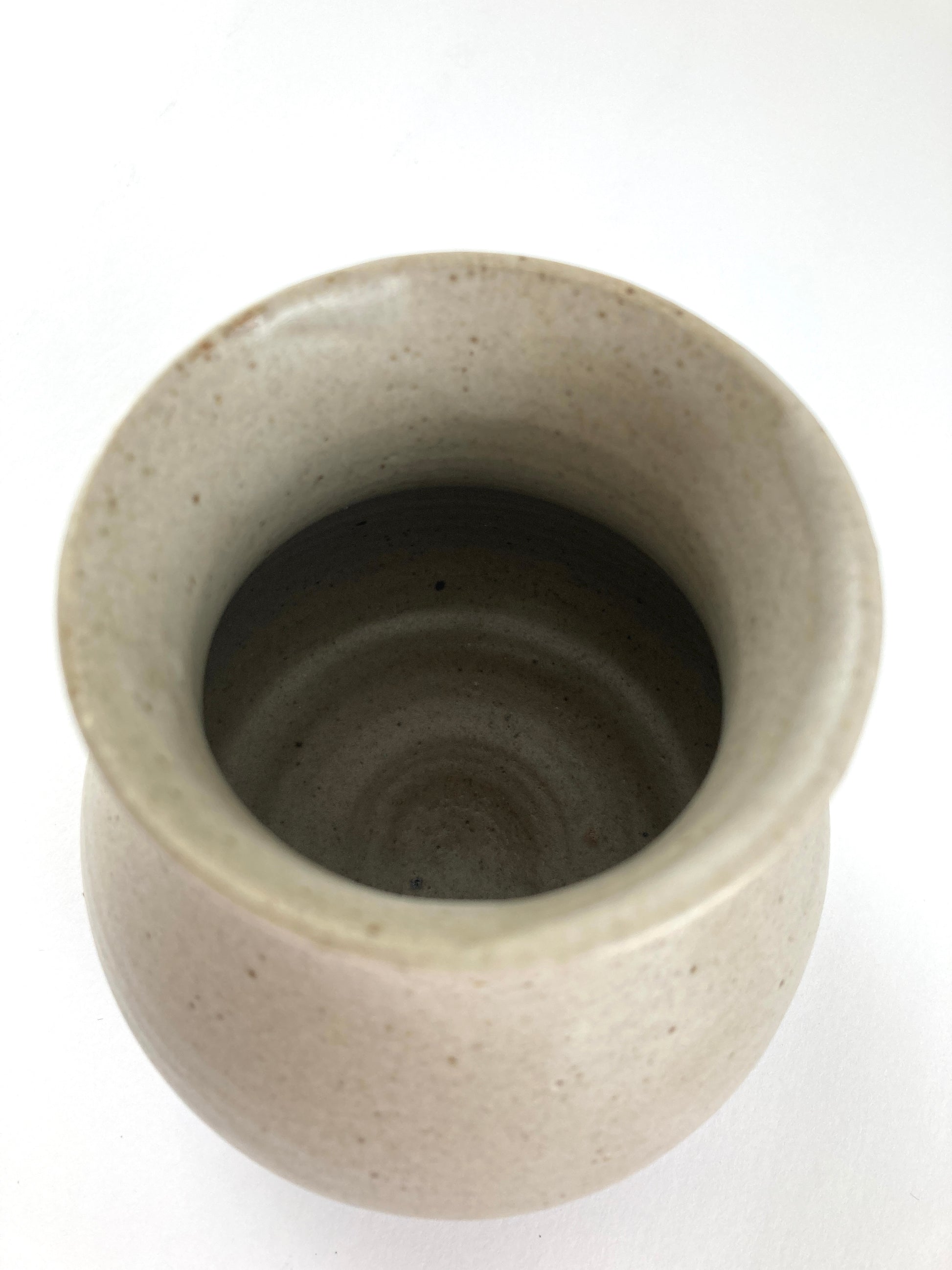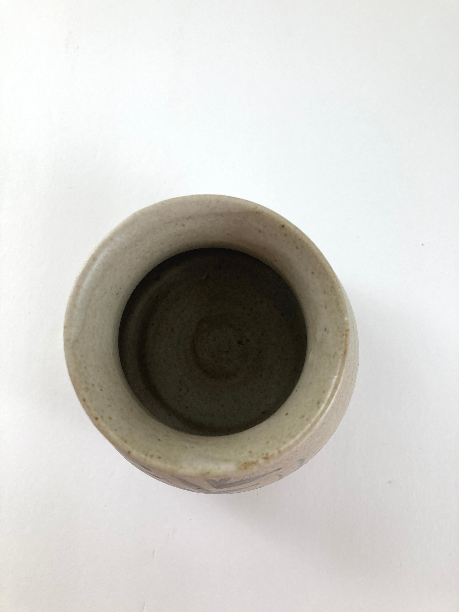 This beautiful vase was made by Suzanne Wissa Wassef who is the eldest daughter of renowned Egyptian artist Rames Wissa Wassef. It is signed on the base and marked #6 TLN Mills. The clean lines of the decoration are indicative of her work. The smooth finish and neutral colors make this a piece that will fit in almost anywhere. The vase sits on a wide base narrowing toward the top. It is squat and looks lovely on its own or would work equally well filled with short-stemmed flowers. A lovely piece of art pottery that will only increase in value.