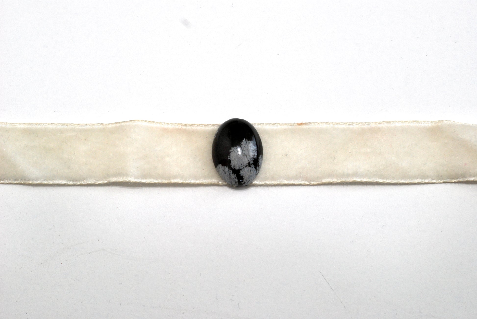 Victorian Era White Velvet Choker with Snowflake Obsidian
