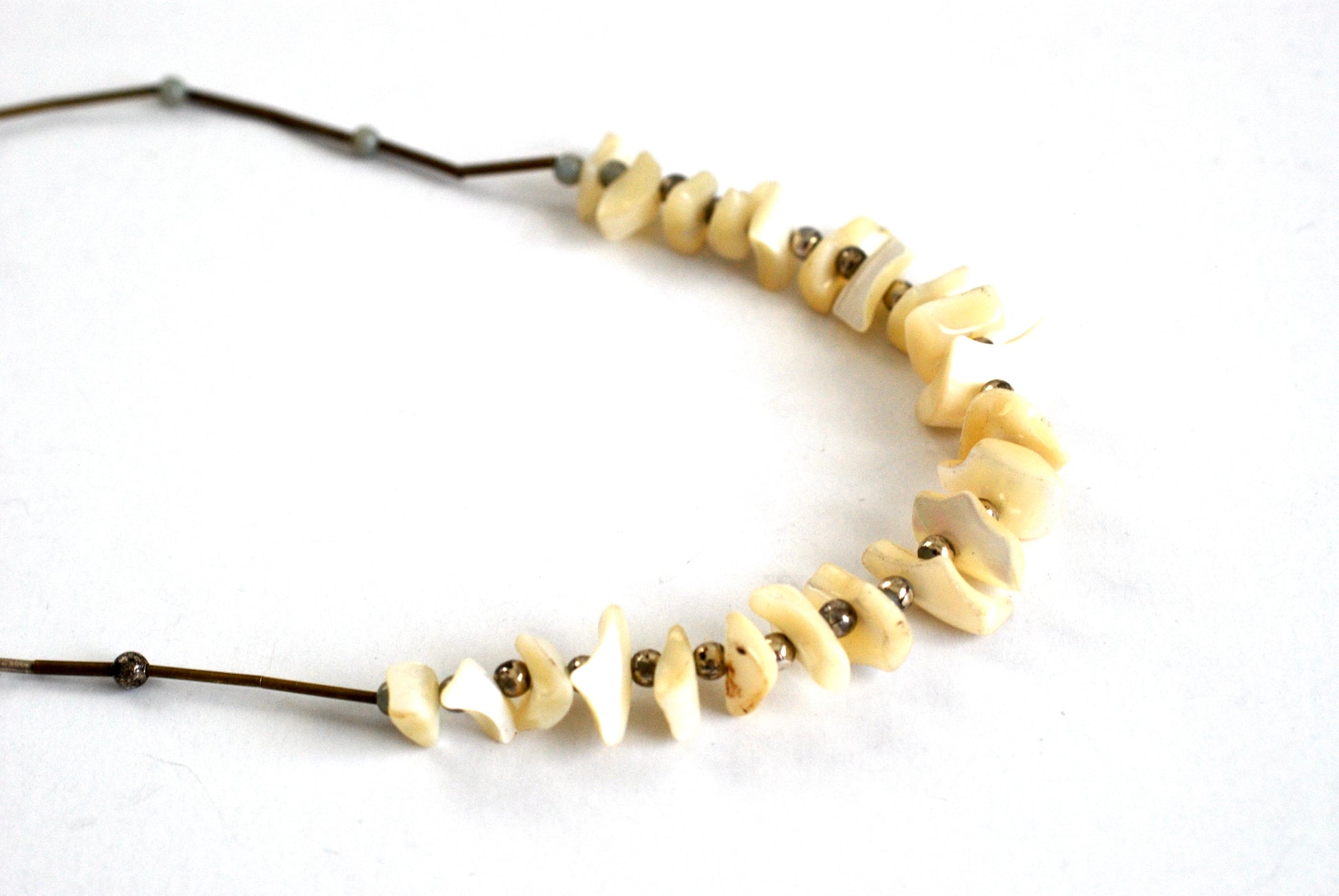Vintage 1970s Chunky BoHo Style Mother of Pearl Necklace