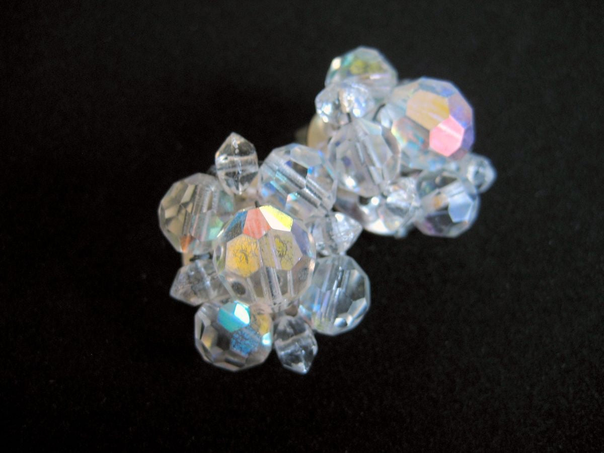 Vintage AB Crystal Cluster Earrings