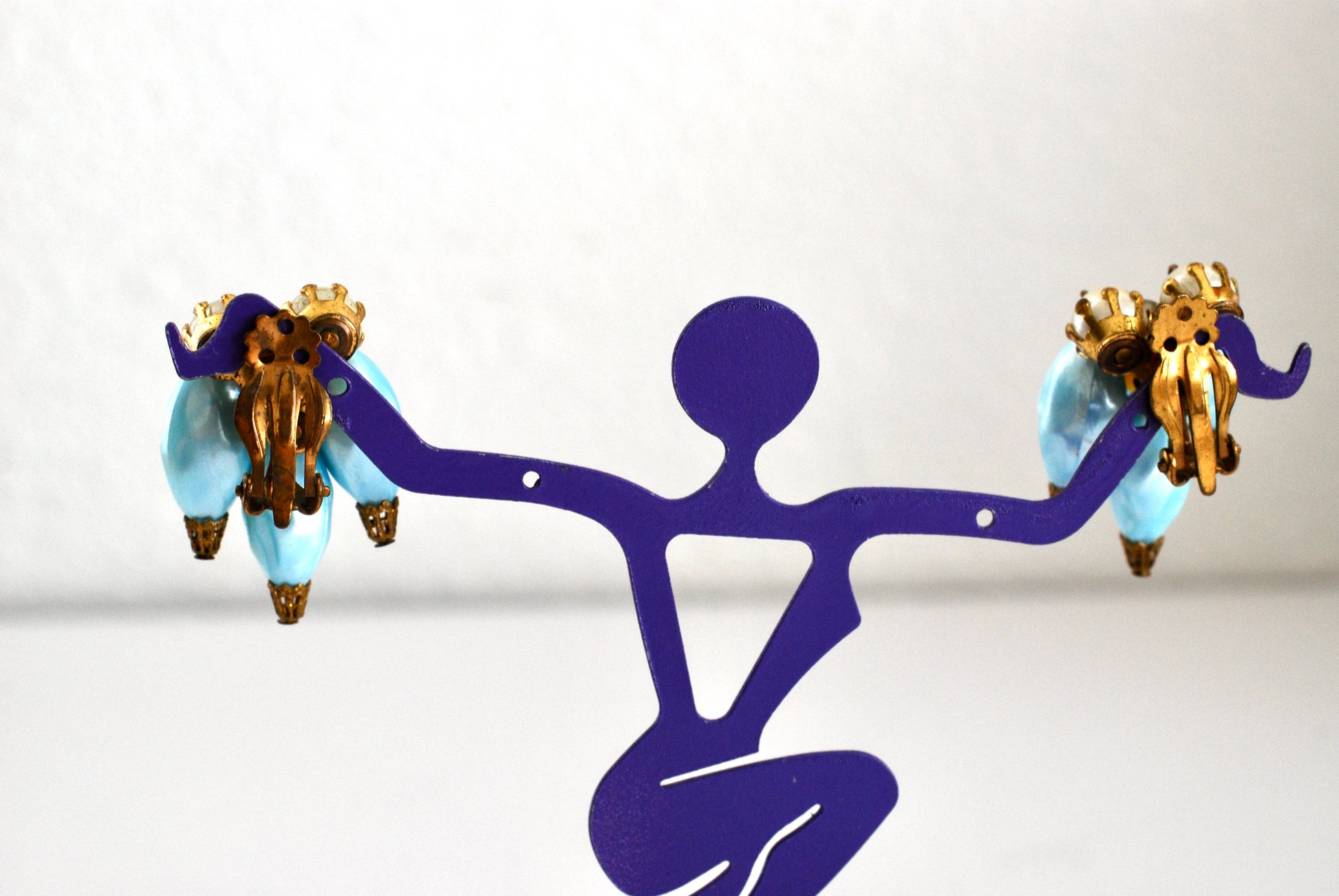 Vintage Baby Blue Dangle Earrings Clip Ons 1950s
