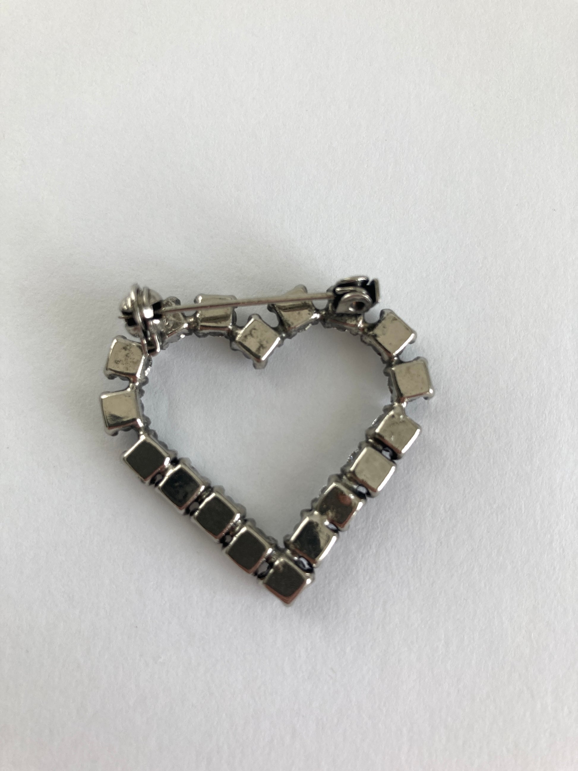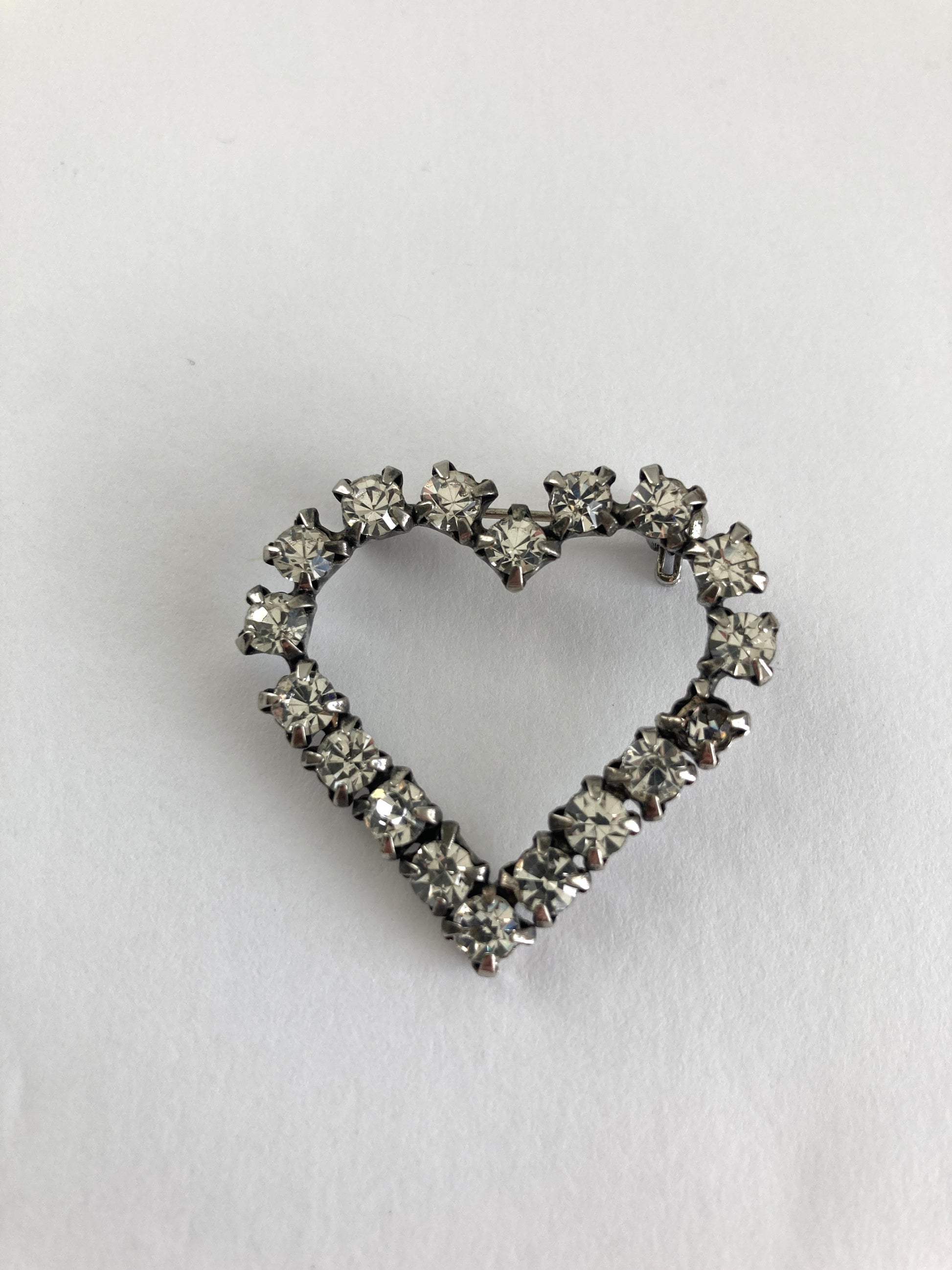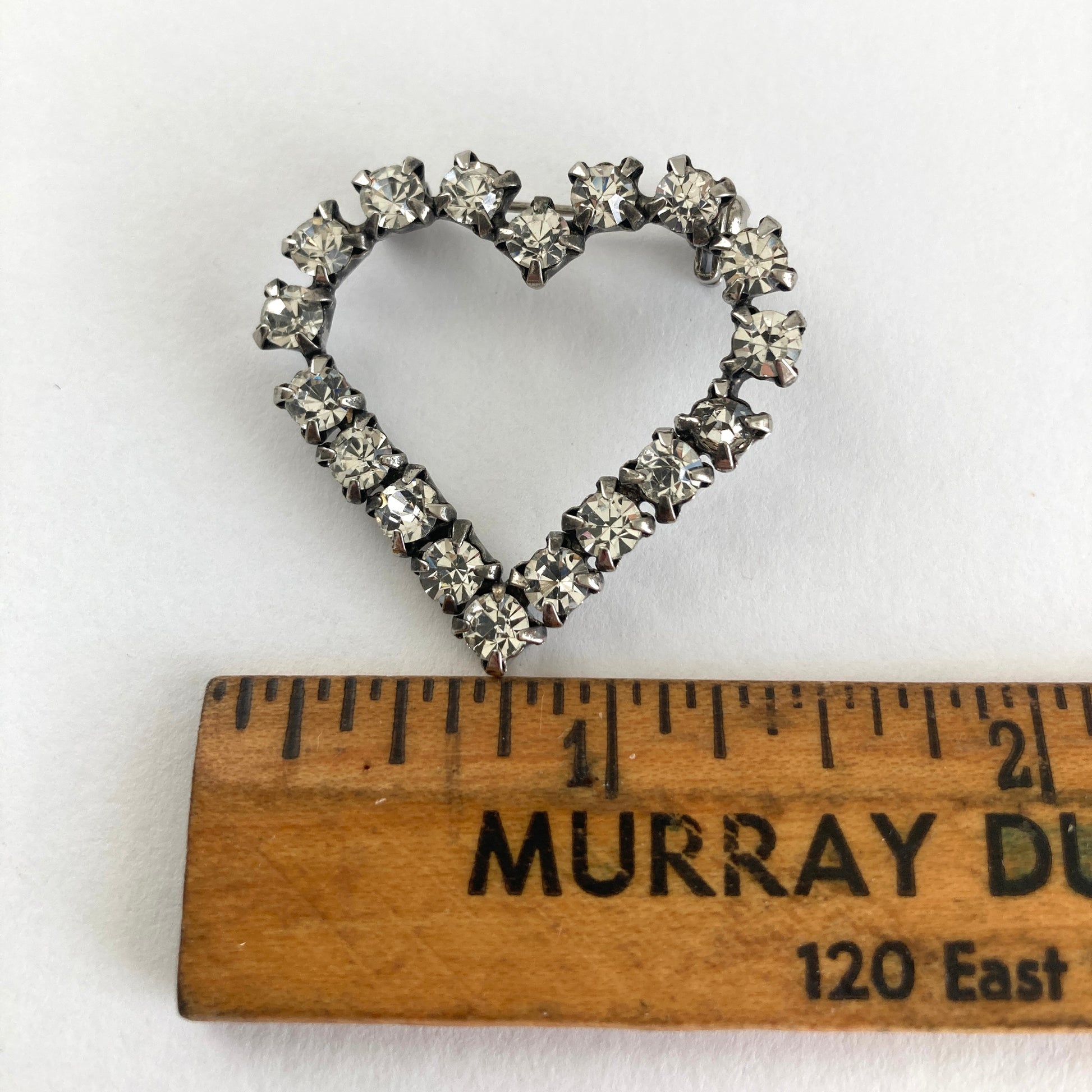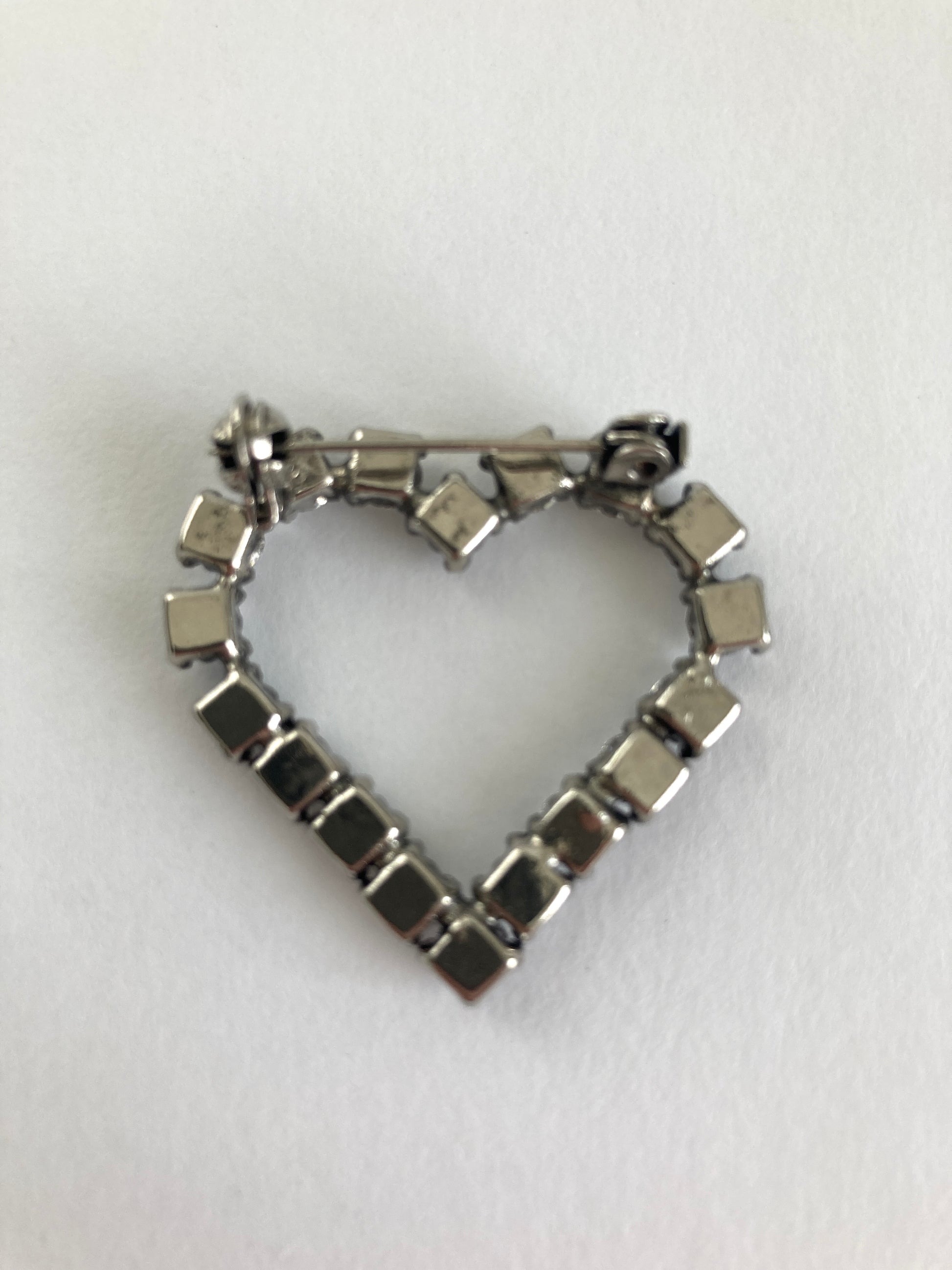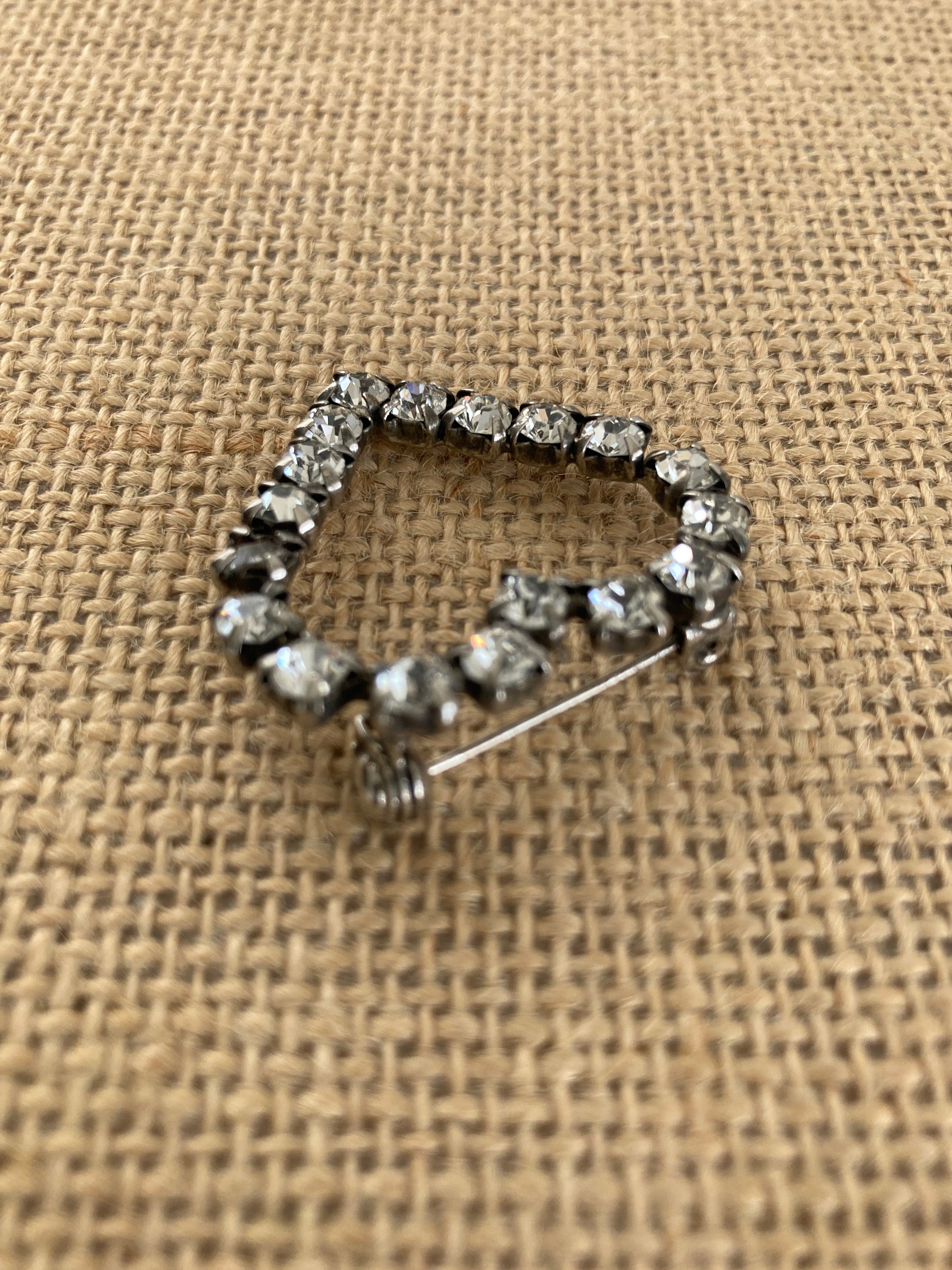 Vintage Clear Rhinestone Open Heart Brooch in Silver