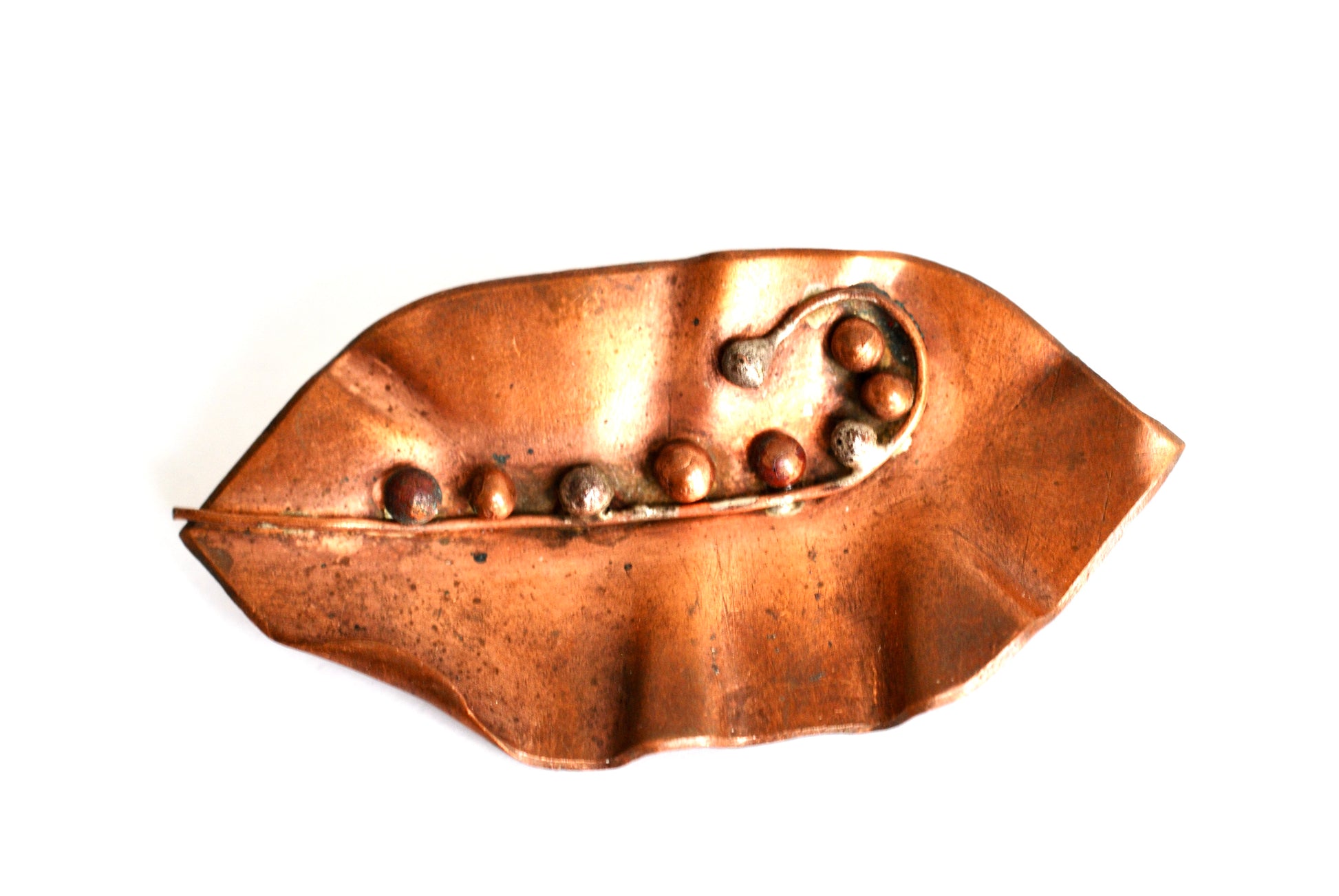 Vintage Copper Brooch Leaf with Lily of the Valley Buds