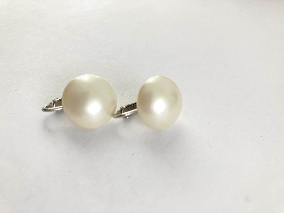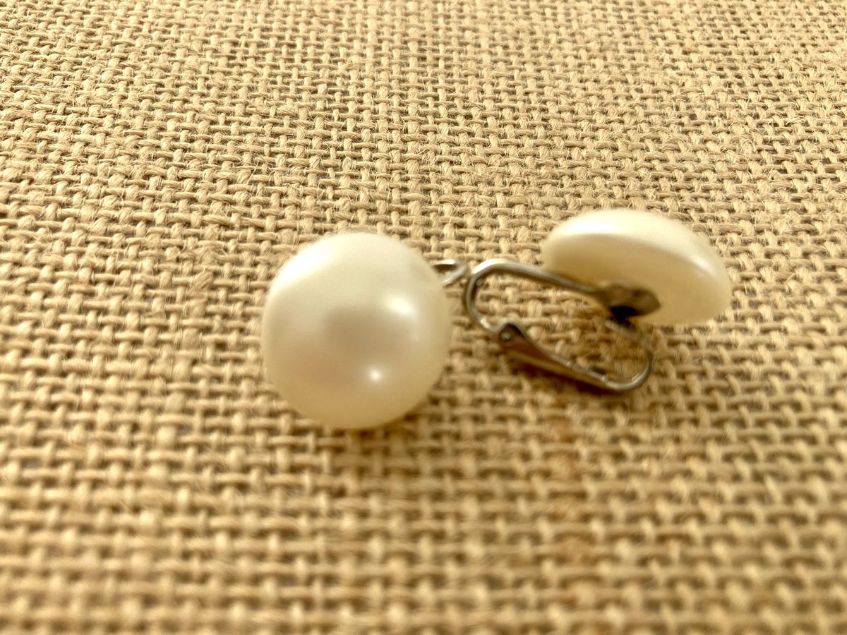 Here's a classic pair of pearlized button earrings with silver-tone clip-on style backs. These conjure up memories of Jackie Kennedy from the early 1960s. These would compliment a vintage dress or suit so well. They are unmarked and show no signs of wear. One earring has a tiny scratch on the surface that can only be seen in just the right light. Considering their age, these are almost perfect.