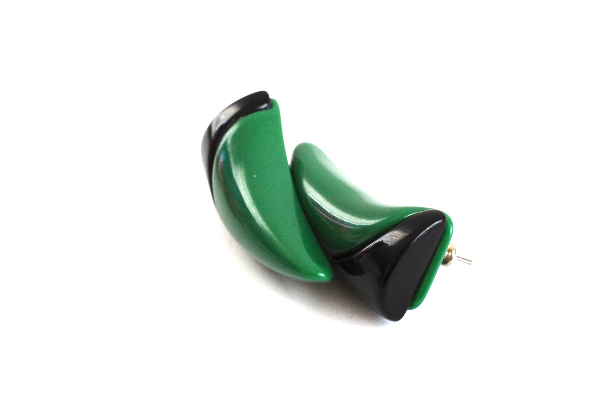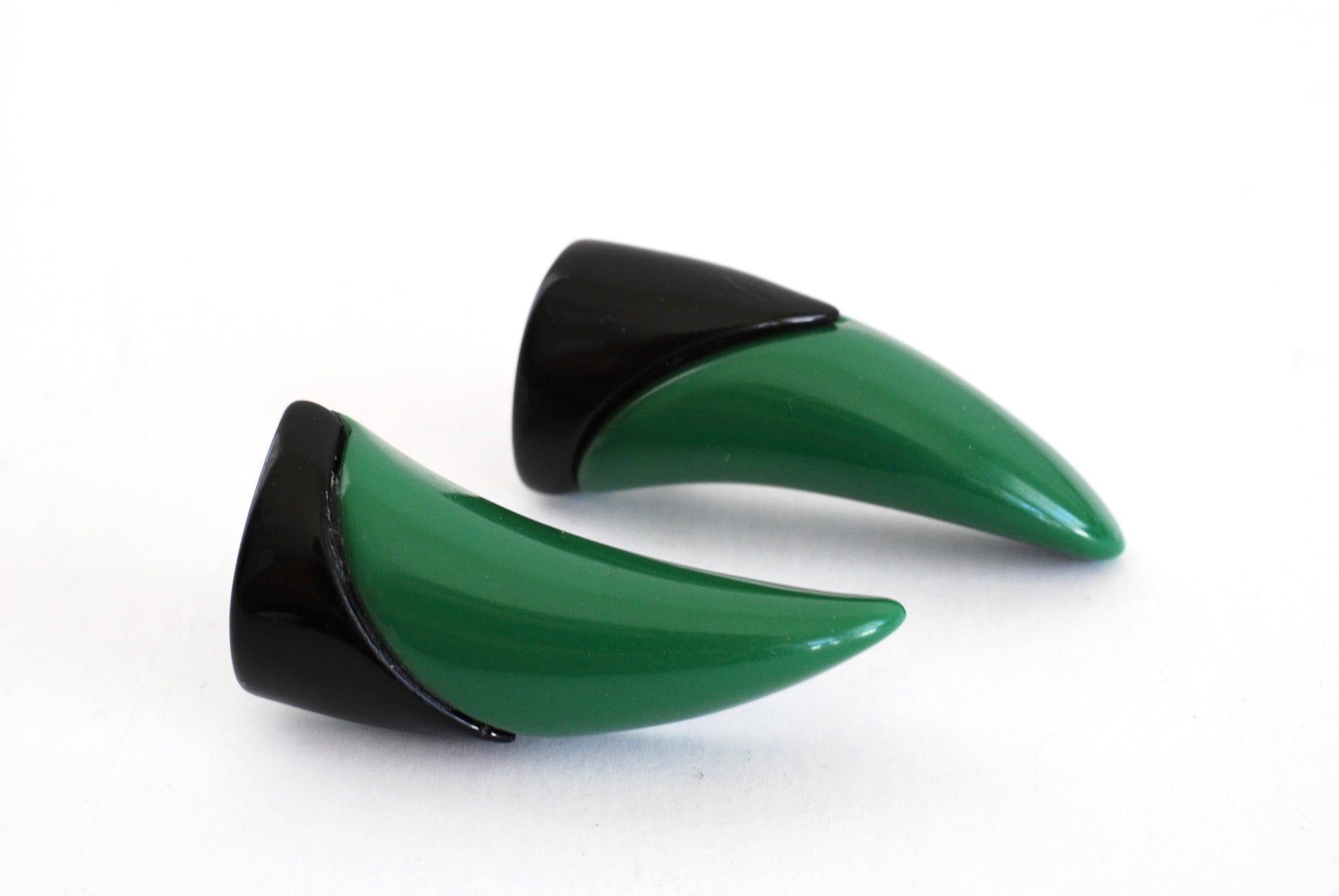 Vintage Green and Black Earrings Horn Shape Pierced