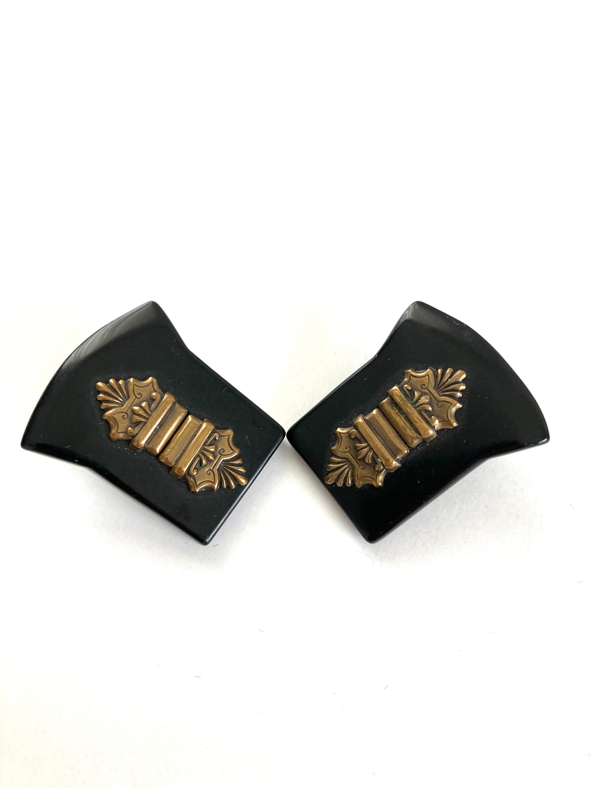 Vintage Jan Michaels Black Onyx & Brass Earrings