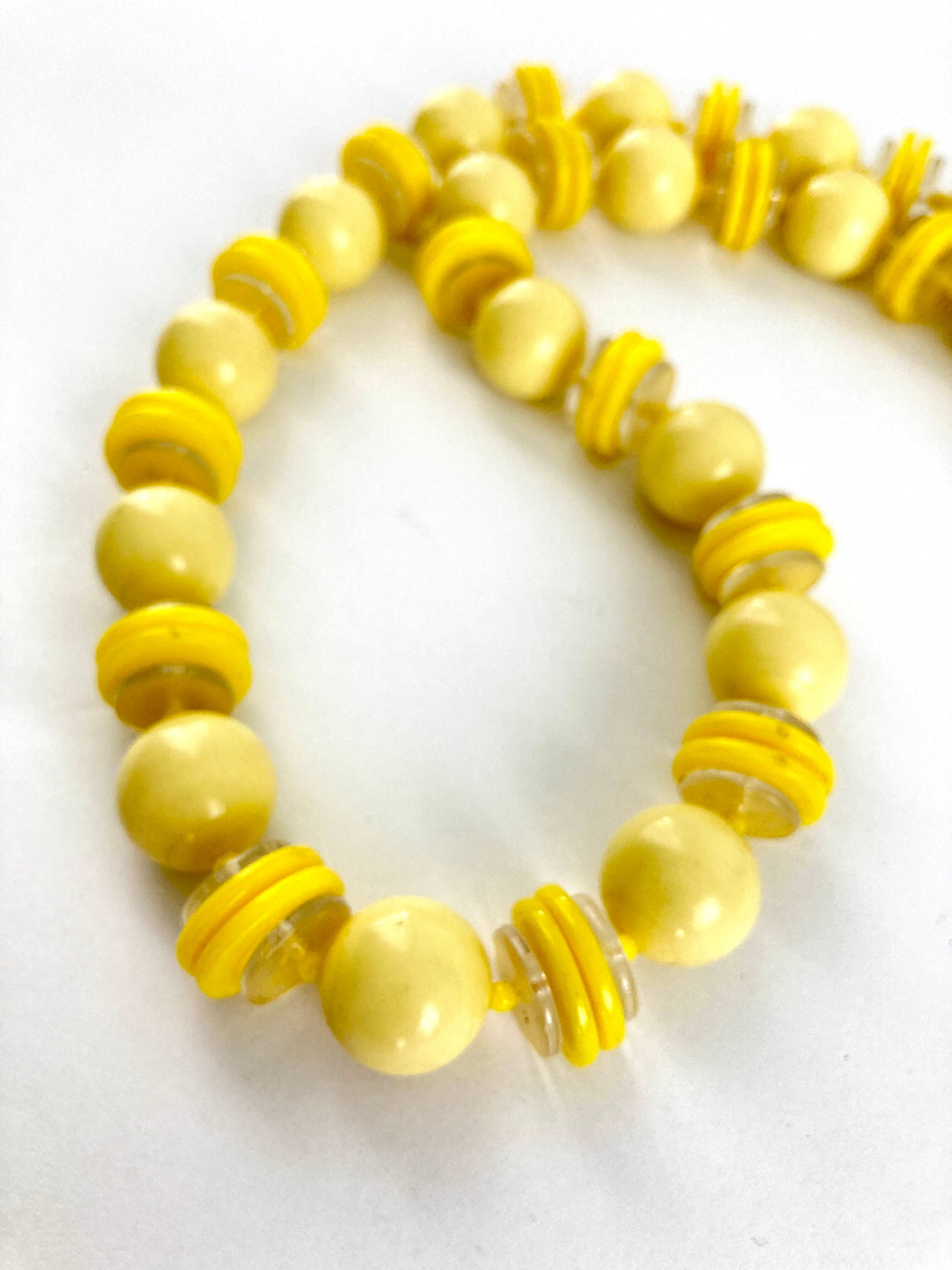 Vintage Mod Look Yellow and Clear Chunky Bead Necklace