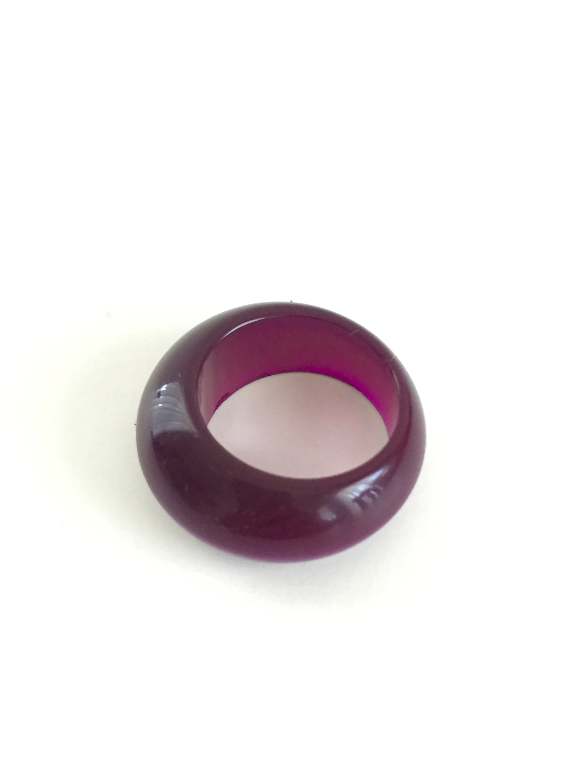This fun deep purple bubble ring features a cool halo effect at the widest part of the ring. It reminds me of something Twiggy would have worn in the 1960's. Great for a retro look. Lightweight and fun to wear.