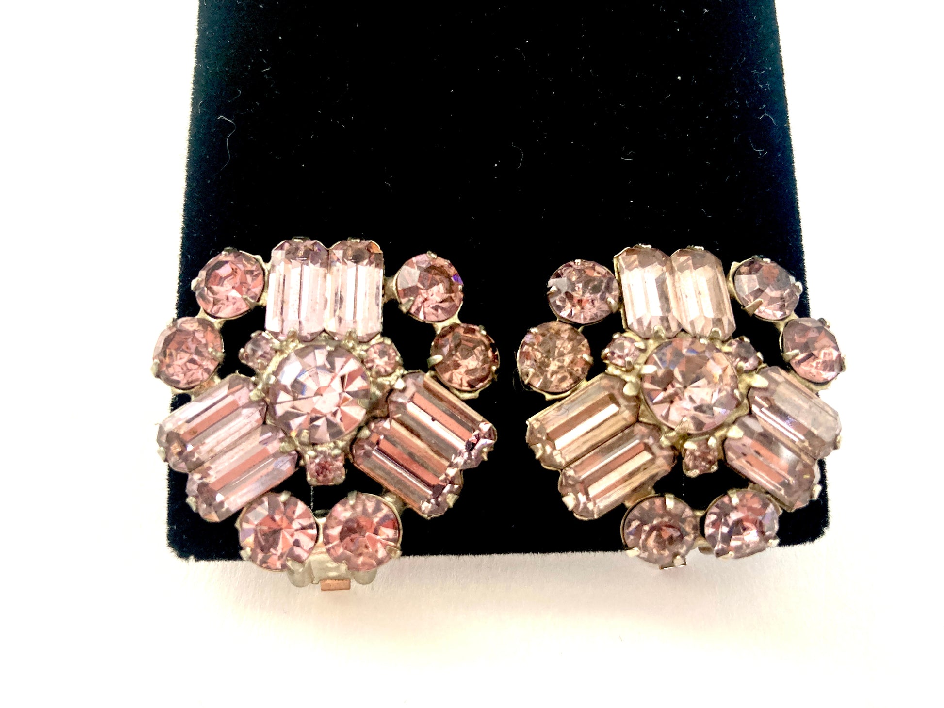 Weiss Lavender Rhinestone Earrings Clip-on Style
